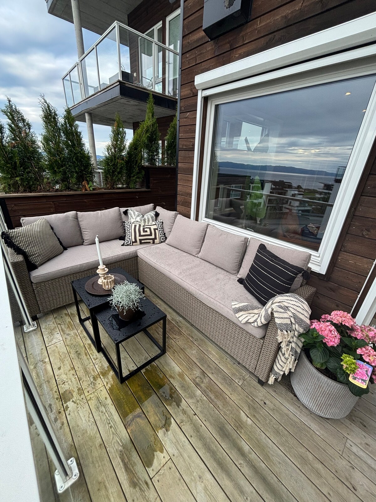 Departamento con fantástico sol y condiciones de vista sobre Trondheimsfjorden. La cocina de 2024. Gran baño con ducha y bañera Jardín grande. Pisos climatizados. Aparcamiento gratuito con posibilidad de cargar un coche eléctrico bajo petición. - Cama doble 160x200 - Cama supletoria previa solicitud - Cuna + equipamiento para bebés a petición Toallas y sábanas incluidas. Limpieza incluida 🚌 🚶🏼➡️Autobús a 10 minutos a pie. 🚙 Trondheim 17 min Aeropuerto de ✈️ Værnes a 10 min