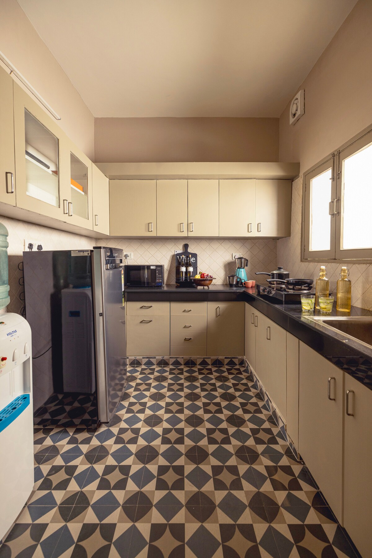 En «H is for Home» ofrecemos un espectacular apartamento privado de 3 dormitorios y 3 baños con una decoración elegante y servicios completos en el corazón de Delhi. Se encuentra en un edificio cerrado y seguro. Delicioso desayuno casero, té/café incluido. Ofrecemos servicio de coche + conductor para recogerte/dejarte en el aeropuerto, dentro de Delhi/NCR y para viajar a Agra/Jaipur. La unidad está situada en el tercer piso con acceso a través de un ascensor moderno. Todas las ventanas tienen rejillas y ofrecemos wifi Jio Fiber superrápido.