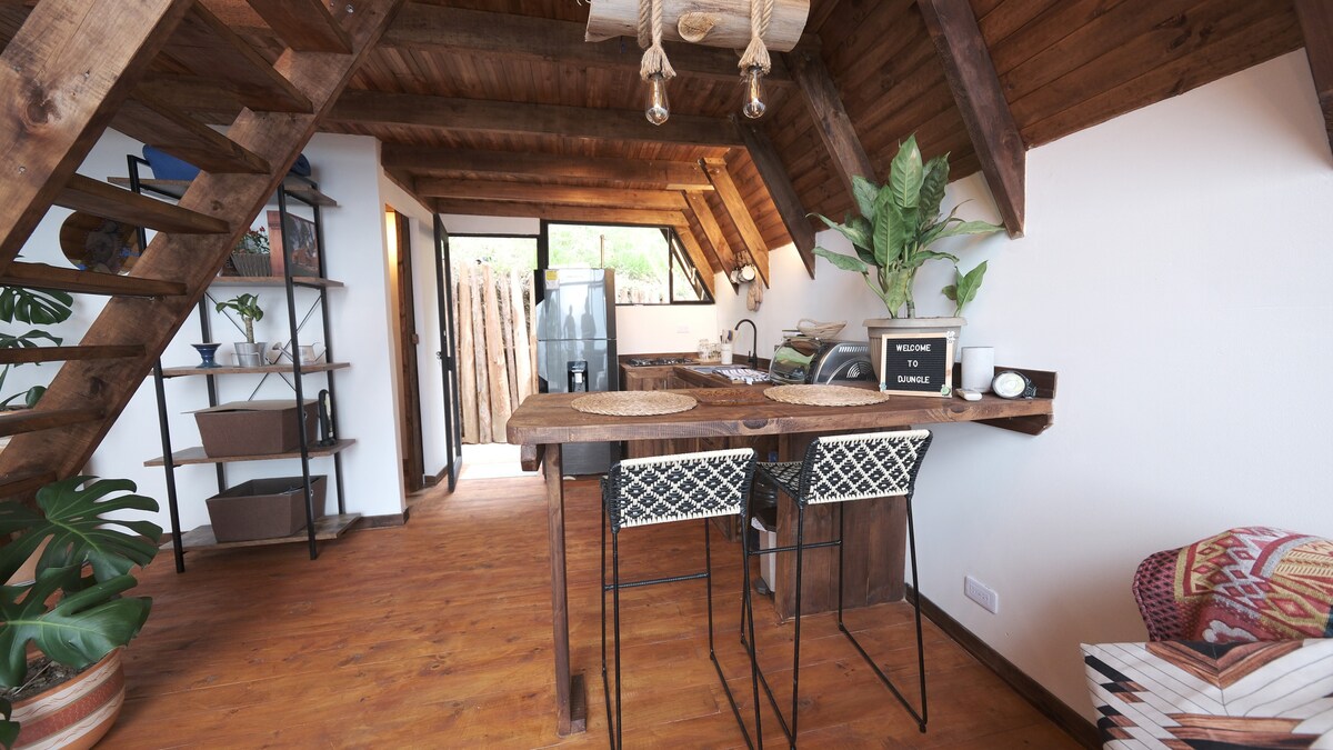 Relájate en la cabaña tu.terra ubicada en “el paraíso”, este es un lugar pensado para que te desconectes de la rutina y disfrutes de la naturaleza. Estarás rodeado de montañas, bellos paisajes y senderos increíbles. La cabaña cuenta con dos pisos. En el primer piso el equipo de cocina con los utensilios necesarios para tu estancia, un baño privado con ducha caliente y sofá cama; en el segundo piso, una cama doble y balcón. En este hermoso lugar también puedes teletrabajar con conexión wifi.