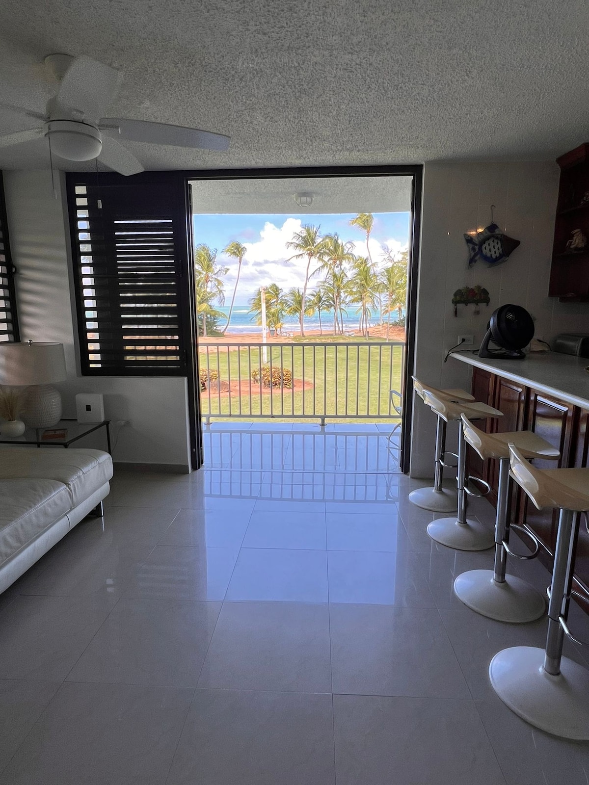 Bienvenidos a nuestro apartamento frente al mar de 673.93 pies² en Playas del Yunque, Río Grande, Puerto Rico. Este apartamento familiar de 2 H y 2 baños está ubicado en una comunidad cerrada, piscinas, canchas deportivas y acceso directo a la playa, ideal para relajarse y disfrutar al aire libre. A solo minutos de El Yunque, este hogar familiar, que perteneció a los bisabuelos de nuestros hijos, refleja cuidado, atención a los detalles y un ambiente cálido y acogedor para familias.