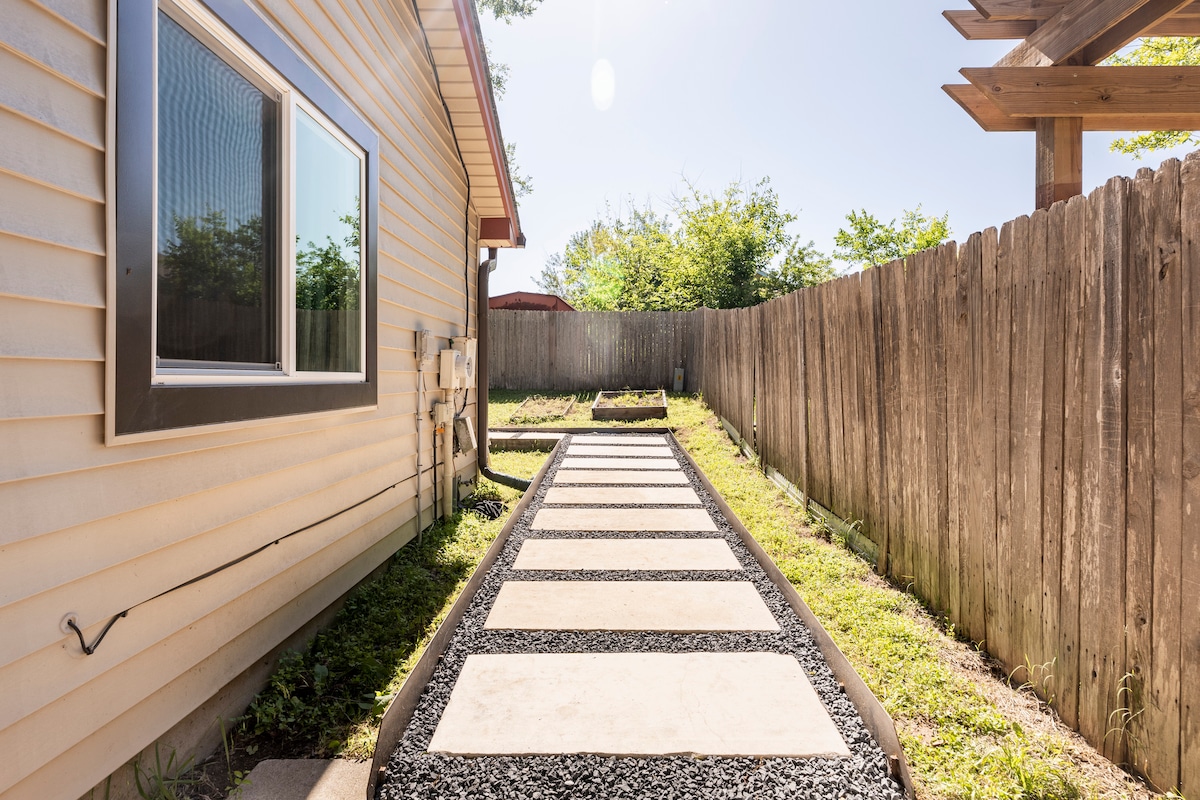 Esta casa de 2 dormitorios y baño fue construida originalmente en la década de 1940 en el centro de Austin. Lo trasladamos a nuestra propiedad hace unos años y la remodelamos por completo. Se encuentra en un lote de 1 acre y ahora está a poca distancia de la nueva extensión de la carretera de peaje 45, que tiene una caminata y un sendero para bicicletas a lo largo de ella. Esta carretera ya está completa y hará que el viaje a Austin sea más rápido. Se tarda aproximadamente 20 minutos en llegar al centro de Austin o a 1 hora del centro de San Antonio.