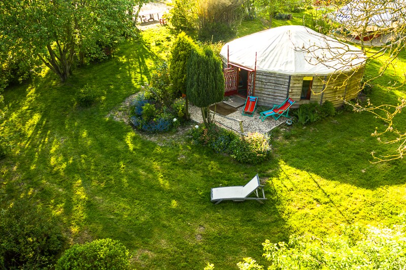 Chez "Au-Bonheur-Nomade": Yurta Ciel contemporánea de 28m² para hasta 4 personas en una finca de 2 hectáreas donde se encuentran yurtas mongolas, tipis indios, casa móvil y tienda marroquí.