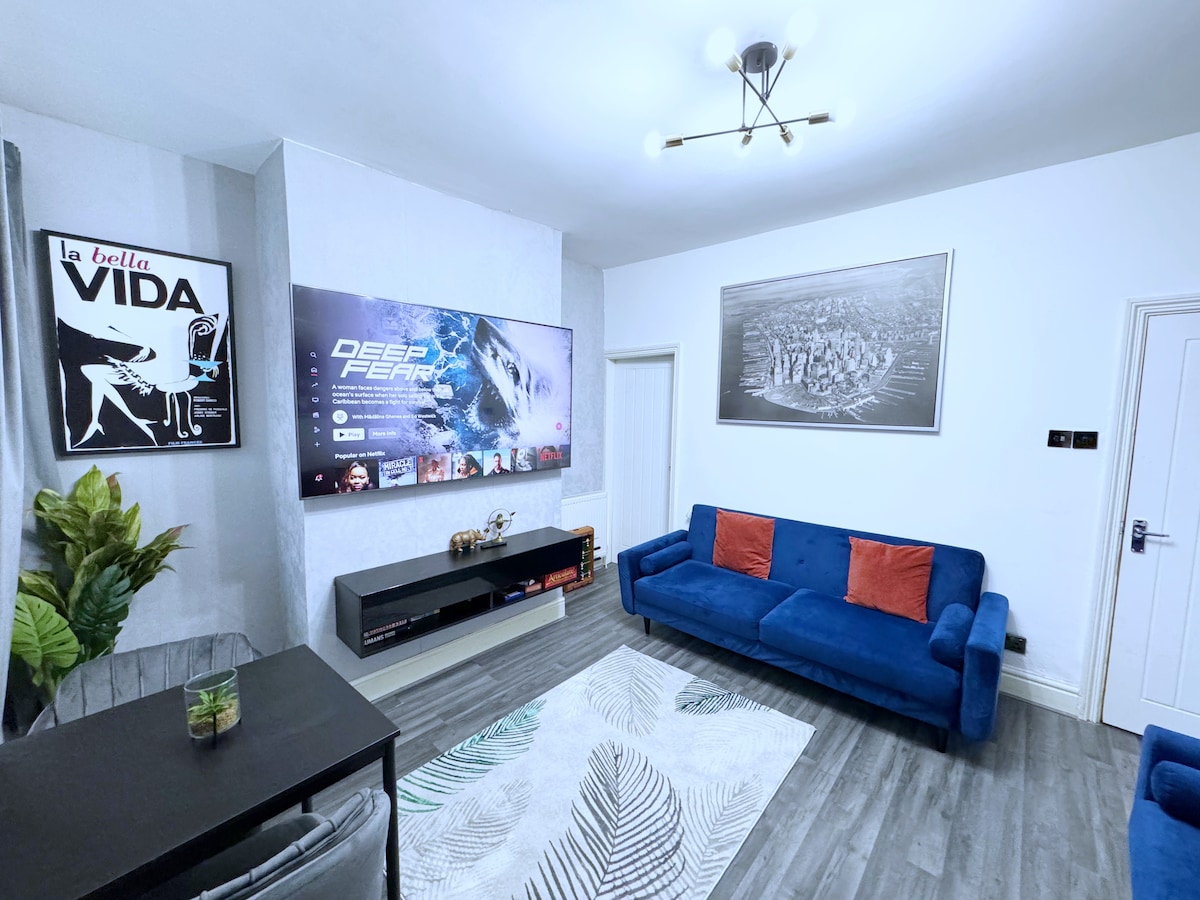 Casa muy espaciosa de 4 dormitorios. Camas 🛌 súper cómodas con colchón de espuma viscoelástica. Camas tamaño king y tamaño king. a ✅ unos 5 minutos de los bares y restaurantes del centro de la ciudad. 🍸 ✅ Estacionamiento ilimitado gratuito 🚗 A ✅ 5 minutos del Manchester United Stadium ⚽️ A ✅ 5 minutos de Media City A ✅ 10 minutos de Trafford Centre. 🛍️ ✅ Cada habitación está equipada con un televisor inteligente de 55 pulgadas. ✅ Freidora de aire 🤩 ✅ Ideales para contratistas Reserva con nosotros ahora y disfruta de tu hogar perfecto lejos de casa.