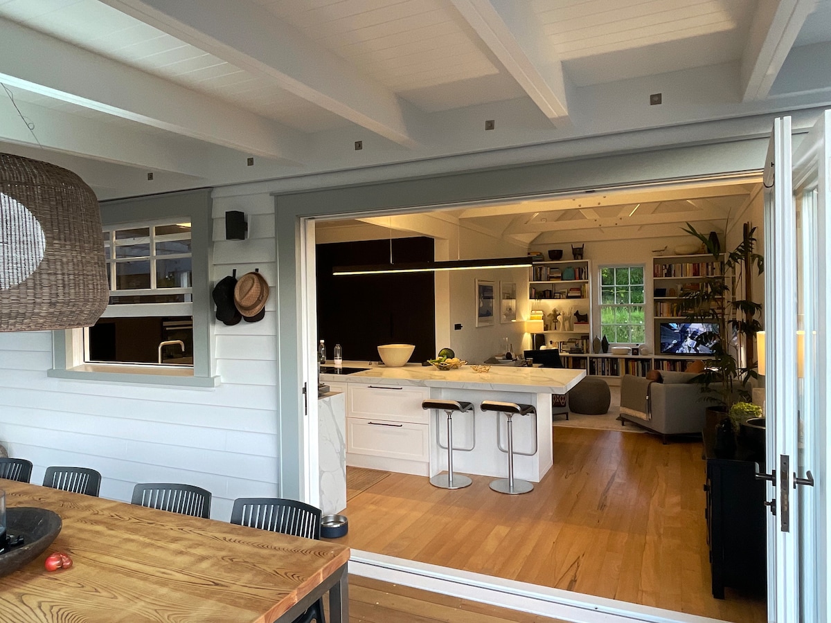 Un espacio rústico rural tranquilo para retirarse y relajarse, pero a pocos minutos de las comodidades de la ciudad y la ruta principal de Northland. Ubicada en los terrenos de una propiedad de 9 acres a mitad de camino a lo largo de un callejón sin salida rural, la casa de campo está contenida dentro de un cobertizo de ordeño de mediados de siglo convertido en acogedor, cómodo y autónomo, caracterizado por un encanto peculiar y rodeado de jardines y cantos de pájaros. Acceso fácil, no es necesario hacer el check-in.