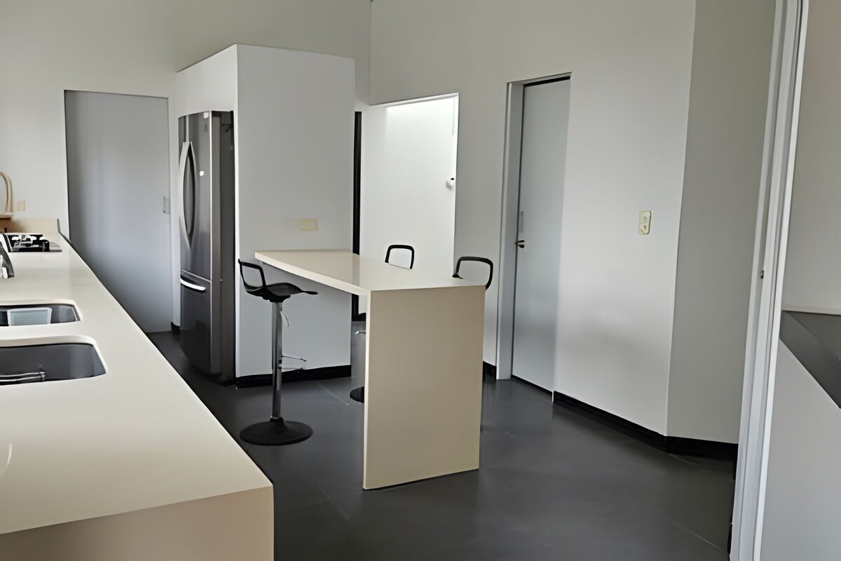 Central, llega rappi y es cerca a la ciudad, fácil acceso. Desde el momento que llegas comienza la aventura. Descargas tus maletas y te sientas en el deck con vista al nevado del Ruiz a disfrutar un vino o cocktail de bienvenida. Posteriormente decides si pasar la tarde ⏰ En la Bañera 🛀 con Vista a todo Manizales En la malla catamarán si eres un poco más atrevido O tal vez prefieras prender Chimenea, sacar unas fotos en nuestro nido colgante. Cuenta con cocina equipa y nevera.