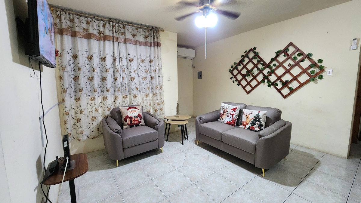 Relájate en este espacio tranquilo y elegante, donde te espera un departamento completo. Disfrutarás de numerosas comodidades, incluida una cocina completamente equipada con todos los utensilios necesarios para preparar exquisitos platos, así como una acogedora habitación con aire acondicionado para garantizar un descanso óptimo. Además, podrás deleitarte con un patio lleno de plantas, perfecto para disfrutar del aire libre y la serenidad que brinda la naturaleza