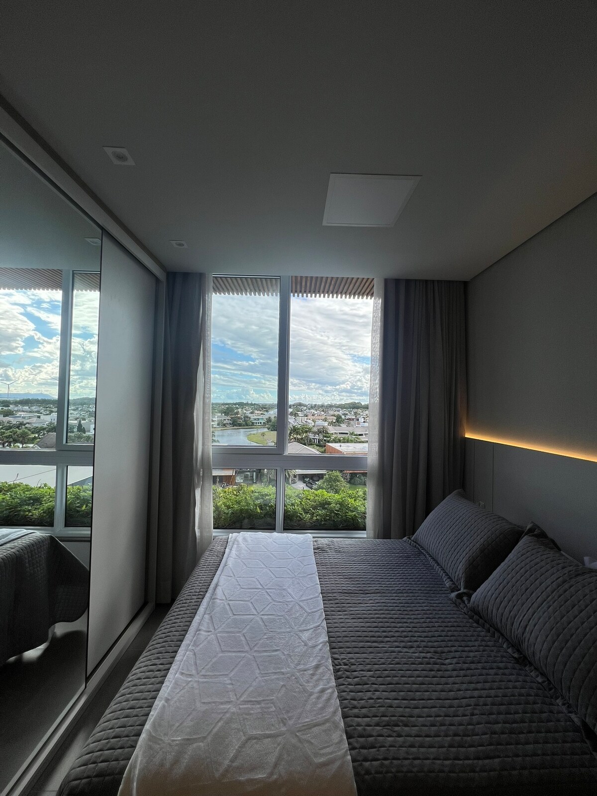 Loft Frente Lago (finamente amueblado y decorado), completo y acogedor. Con capacidad para 4 personas (2 adultos y 2 niños o 3 adultos), ya que cuenta con un dormitorio moderno independiente y un cómodo sofá cama. El apartamento cuenta con diferenciales como: 2 aires acondicionados, 2 televisores smart tv sony, internet en la sala, balcón integrado con parrilla, blackout en las cortinas, cocina con isla completa con todos los utensilios, horno eléctrico, microondas, etc. Todo en el mejor y completo condominio Rossi ATLÂNTIDA