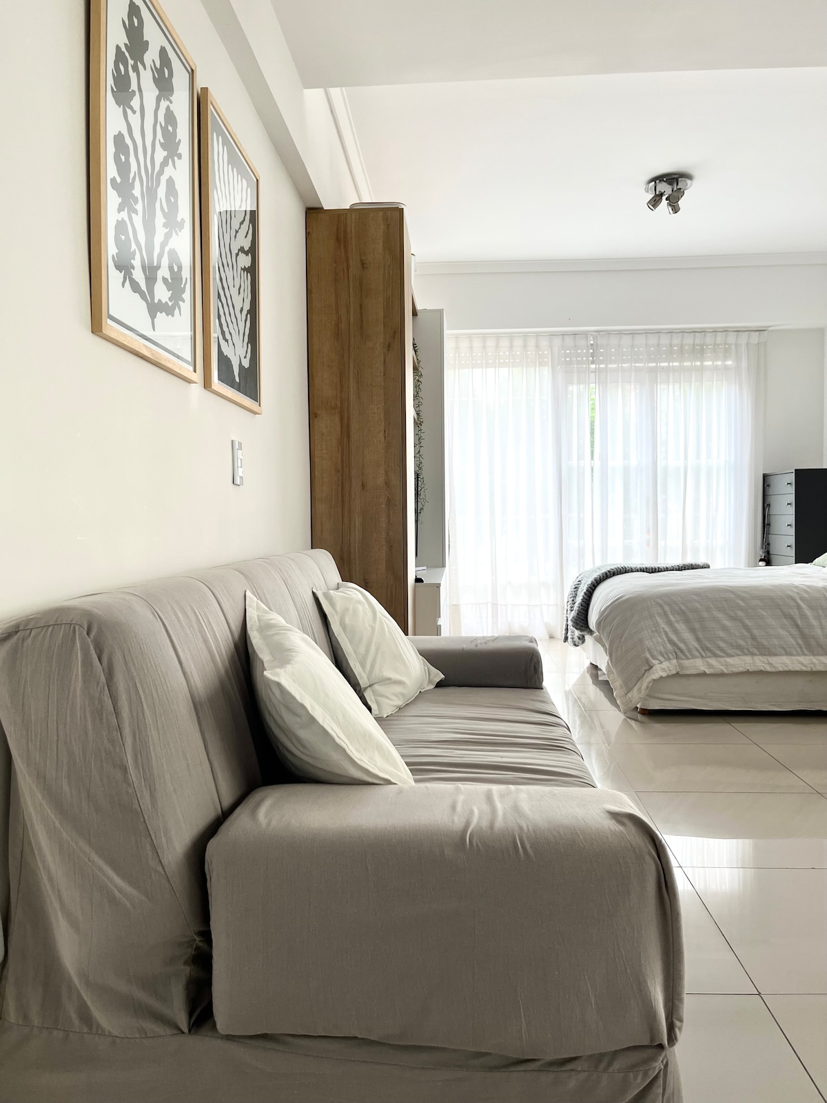 Disfrutá de una experiencia única frente al mar en este moderno departamento en el barrio la Perla. Ubicado en un primer piso con balcón privado y vista directa y panorámica al mar, el espacio destaca por su luminosidad y estilo. Con una cama matrimonial rebatible de diseño, cocina separada equipada con heladera, microondas y estación de desayuno. Este alojamiento ofrece la combinación perfecta de confort y elegancia para vivír la magia de la costa marplatense en un entorno único.