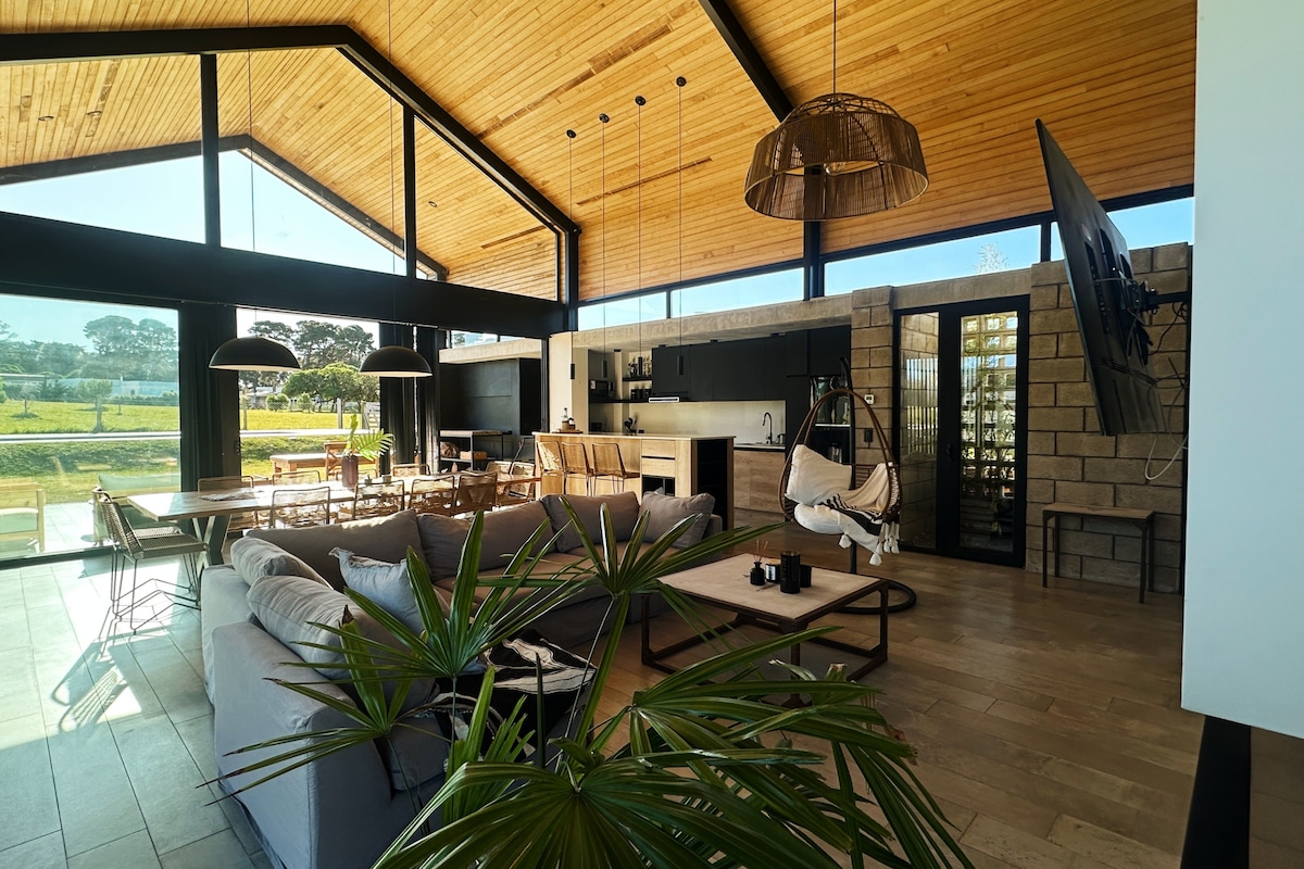 Veni a disfrutar con quien elijas en este tranquilo alojamiento rodeado de verdes, Emplazada en una calle sin salida lo que hace casi nula la circulación vehicular, hace de nuestra casa un lugar inmejorable para relajar . Los 1200 mts de terreno y la piscina climatizada dan lugar para que grandes y chicos disfruten de la naturaleza. Es disfrutable en todas las estaciones del año gracias a que cada rincón de la casa tiene vista al exterior . El hogar a leña hará tu estadía inolvidable .