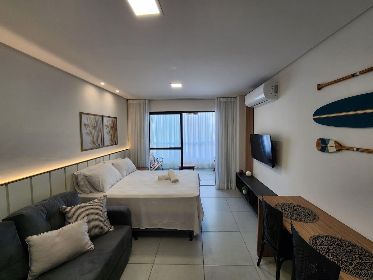 Despierta con el sonido de las olas y duerme con el atardecer reflejado en el manglar. Nuestro apartamento, a solo 100 metros de la playa, ofrece el equilibrio perfecto entre la privacidad y el conforto. Compacto, acogedor y nuevo, el espacio fue pensado para quienes buscan renovar su energía y relajar: sea en la piscina en la veranda o en la piscina de la terraza del predio. Ven a vivir el amanecer sobre el mar y el atardecer dorado sobre el manglar — un paisaje que quedará en tu memoria.