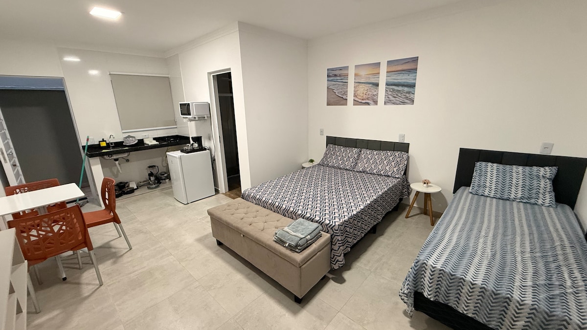 Estudio moderno, ideal para 2 personas, ofrece el equilibrio perfecto entre comodidad, practicidad y una ubicación privilegiada: 🚗 Aparcamiento exclusivo y gratuito, 🏖 Proximidad única al mar: a pie de la playa. 🍳 Cocina completa equipada con fogones, nevera y microondas; ❄ Aire acondicionado 📺Televisión de 32" y wifi de alta velocidad. Un verdadero refugio para quienes buscan tranquilidad, comodidad y fácil acceso a la playa, sin renunciar a la seguridad de tener su vehículo protegido.