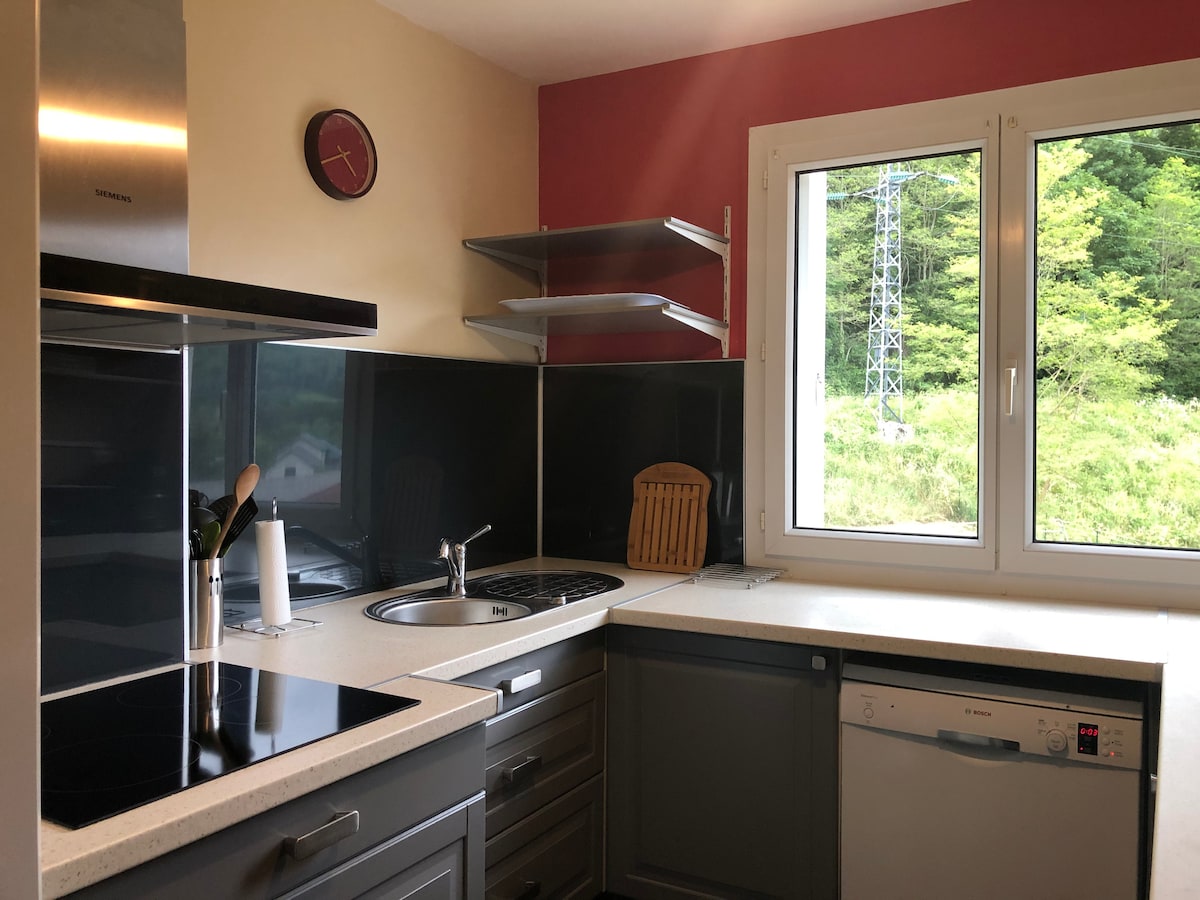 Alojamiento bien equipado Cocina equipada: cocina de gas, horno microondas, cafetera, hervidor, tostadora, vajilla, nevera congelador Lavadora Televisor Cama de 140 + convertible en 140 Acceso a Internet de alta velocidad Camas hechas a su llegada, una toalla de baño por persona, dos paños de cocina Productos disponibles Para el desayuno (té, café, azúcar) y para cocinar (sal, pimienta, aceite, vinagre, especias). Mantenimiento (esponja, lavavajillas, papel de cocina y papel de aluminio)