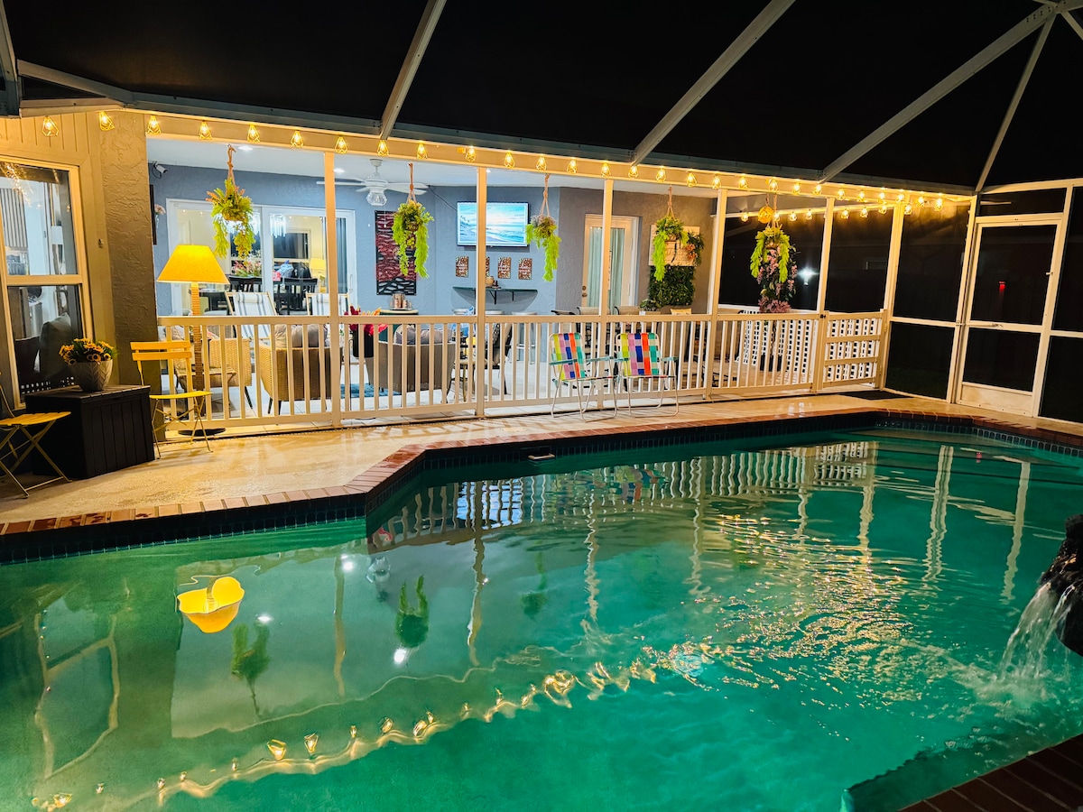 ¡Trae a toda la familia a este relajante paraíso en un barrio tranquilo, a pocos minutos de las mejores playas, tiendas y restaurantes de Nápoles! La casa cuenta con 3 dormitorios y un hermoso interior, recién modelado y decorado en 2026. Relájate en la hermosa zona al aire libre que incluye una piscina climatizada con sistema de sal, un lanai cubierto, una gran hamaca, sillas de descanso, parrilla para barbacoa, un amplio césped y muchos rincones acogedores para tu disfrute. ¡Te esperan momentos dorados de relajación e inolvidables!