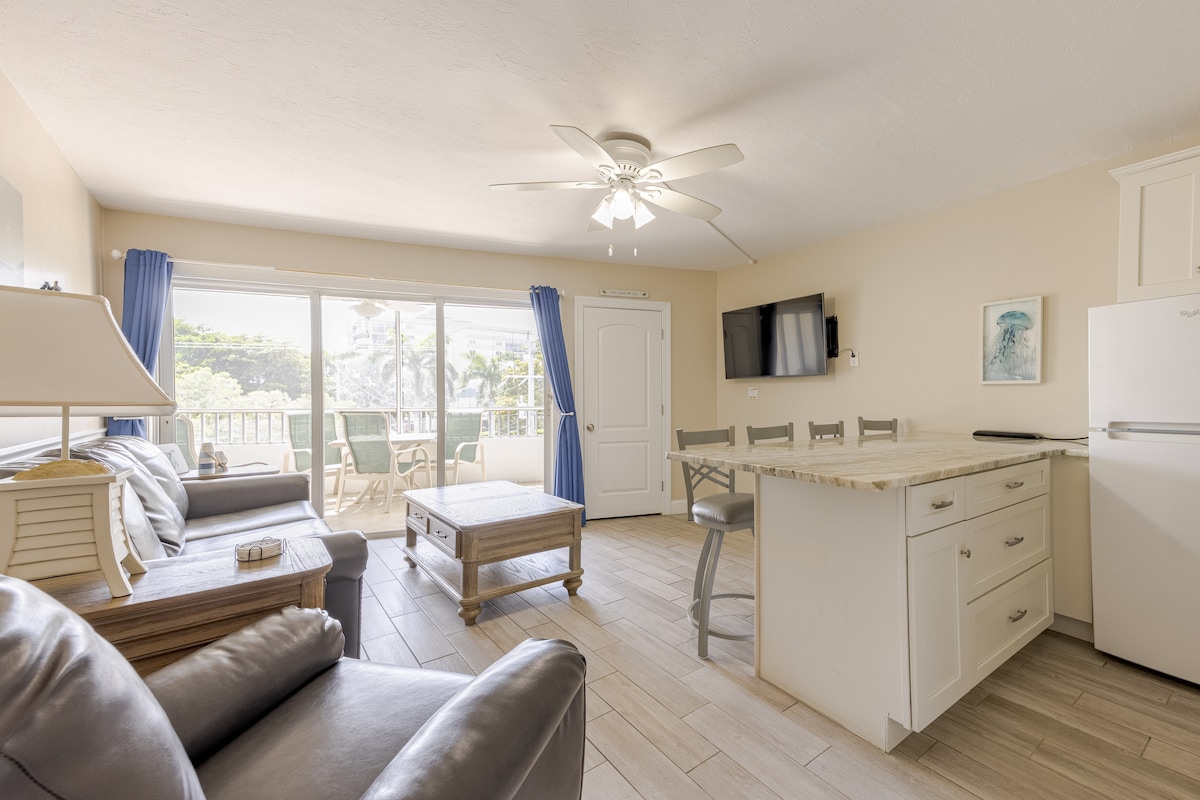 Unique Waterfront Condo & Gorgeous Intercoastal Views, Wildlife, Fishing, Boat Dock. 1 block from Snook Inn! Adjacent Pool Steps Away from Patio. NEWLY REMODELED! Pool & 2 Private Patios overlook Beautiful Waterfront, Dolphins, Manatees, Exotic Birds. Main Floor -no steps. If you love water and WILDLIFE, this place is for you! Fishing on the dock-Fishing Poles and Tack Supplied, pull your boat right to the back door. TONS of wildlife. Dock is lit at night, watch the sea life! NON SMOKING UNIT