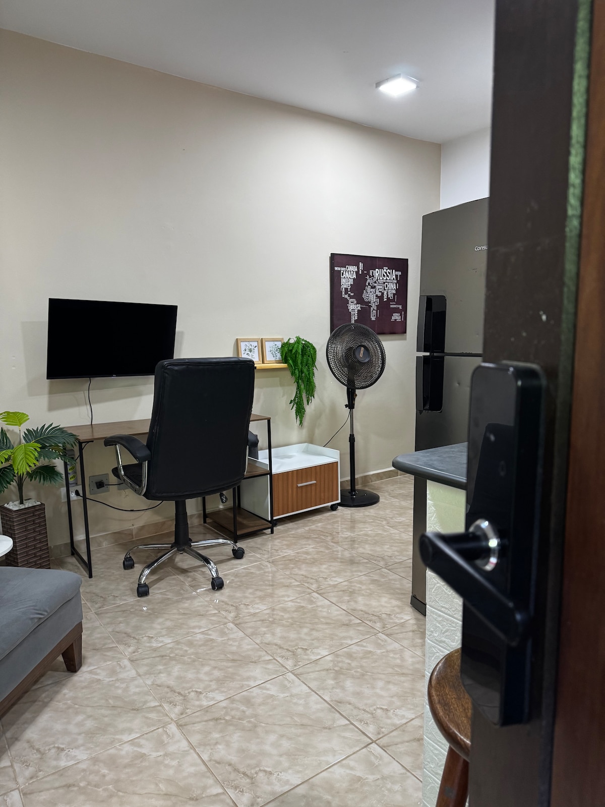 Estudio cómodo y privado para hasta 4 personas a unos 200 metros de la playa de Maresias. Cuenta con aire acondicionado, wifi, TV inteligente con Netflix y Youtube y otras aplicaciones, balcón con red, estacionamiento, cocina privada equipada con microondas, nevera, estufa, utensilios de cocina y filtro de agua. Se ofrecen sábanas de cama y baño. Temperatura externa de la piscina. (No se permiten páginas) 1 plaza de coche disponible para el apartamento. Hablamos inglés y español.