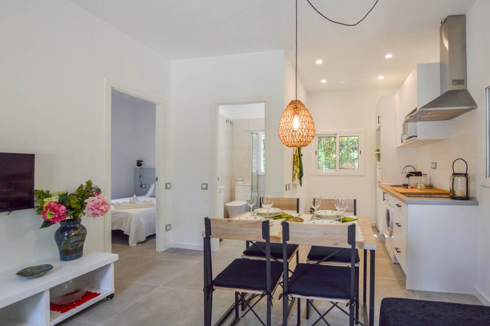 la casita de patio, es el resultado de un sueño. Situada junto a la piscina en el patio de la casa principal, consta de dos estancias. En la preciosa entrada se encuentra un inmenso vestidor. Desde ahi, accederás a un espacio diáfano en el que no encontrarás a faltar de nada. 2 terrazas para tu uso exclusivo La piscina, barbacoa, el solárium y el patio son compartidos con mi nieta y conmigo. En verano puede coincidir también mi familia, siempre con respeto a la privacidad de los huéspedes.