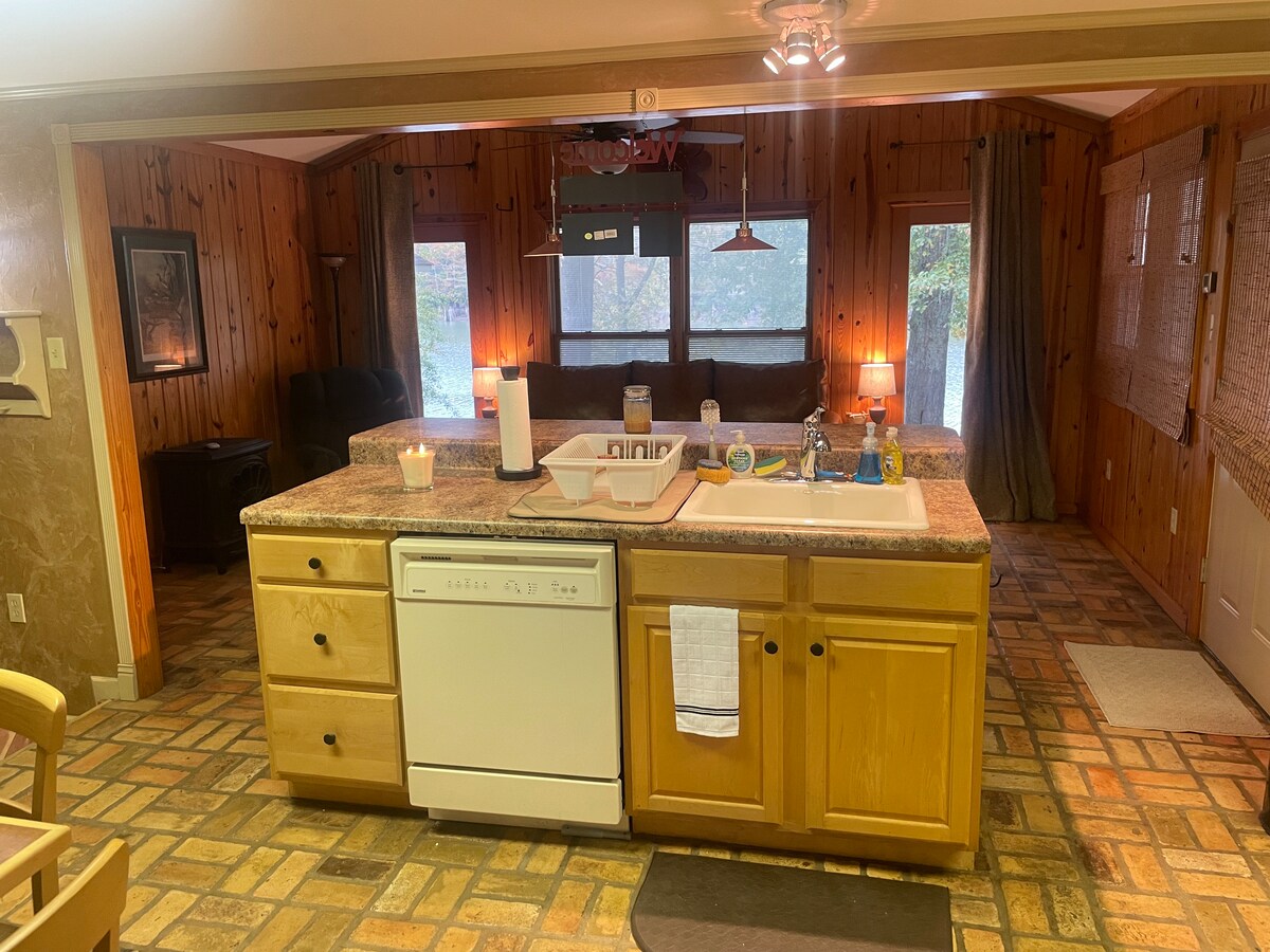 Our cozy one-bedroom lodge is located just 1/2 miles from the White River Landing. It features a full kitchen with new dishwasher, comfortable queen-sized bed, two full-size sofas, a queen size air mattress, a 75” smart tv in the living room, 55” smart tv in the bedroom, carport, private driveway and fire pit.