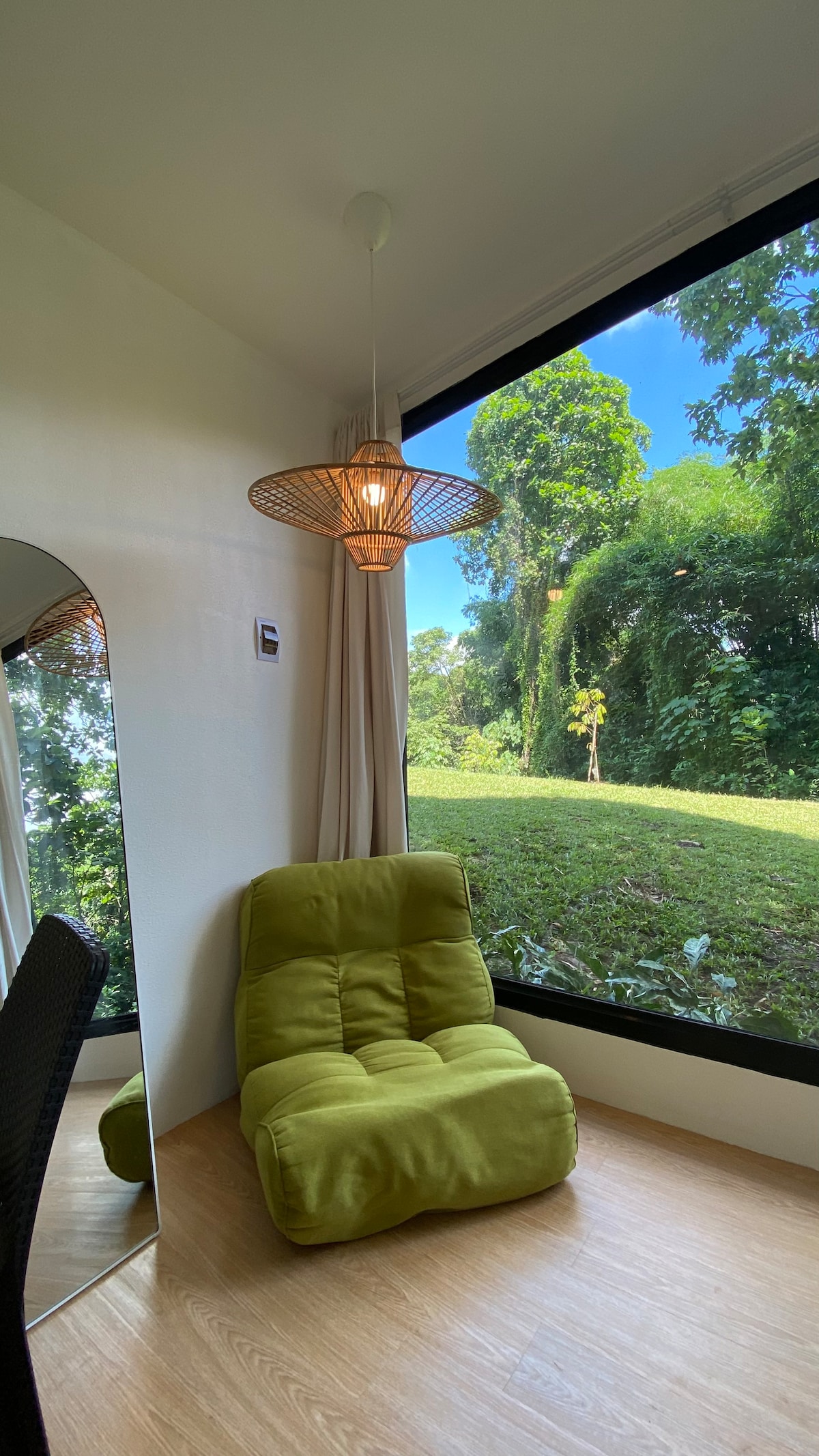 Relax in a cozy bamboo gazebo with a plush lounge, KTV/TV, and private bar. Enjoy nights around the fire pit with soft LED lighting, string lights, and a beautiful landscaped garden. Perfect for couples, families, or small groups looking for a peaceful, fun, and photo-worthy stay.