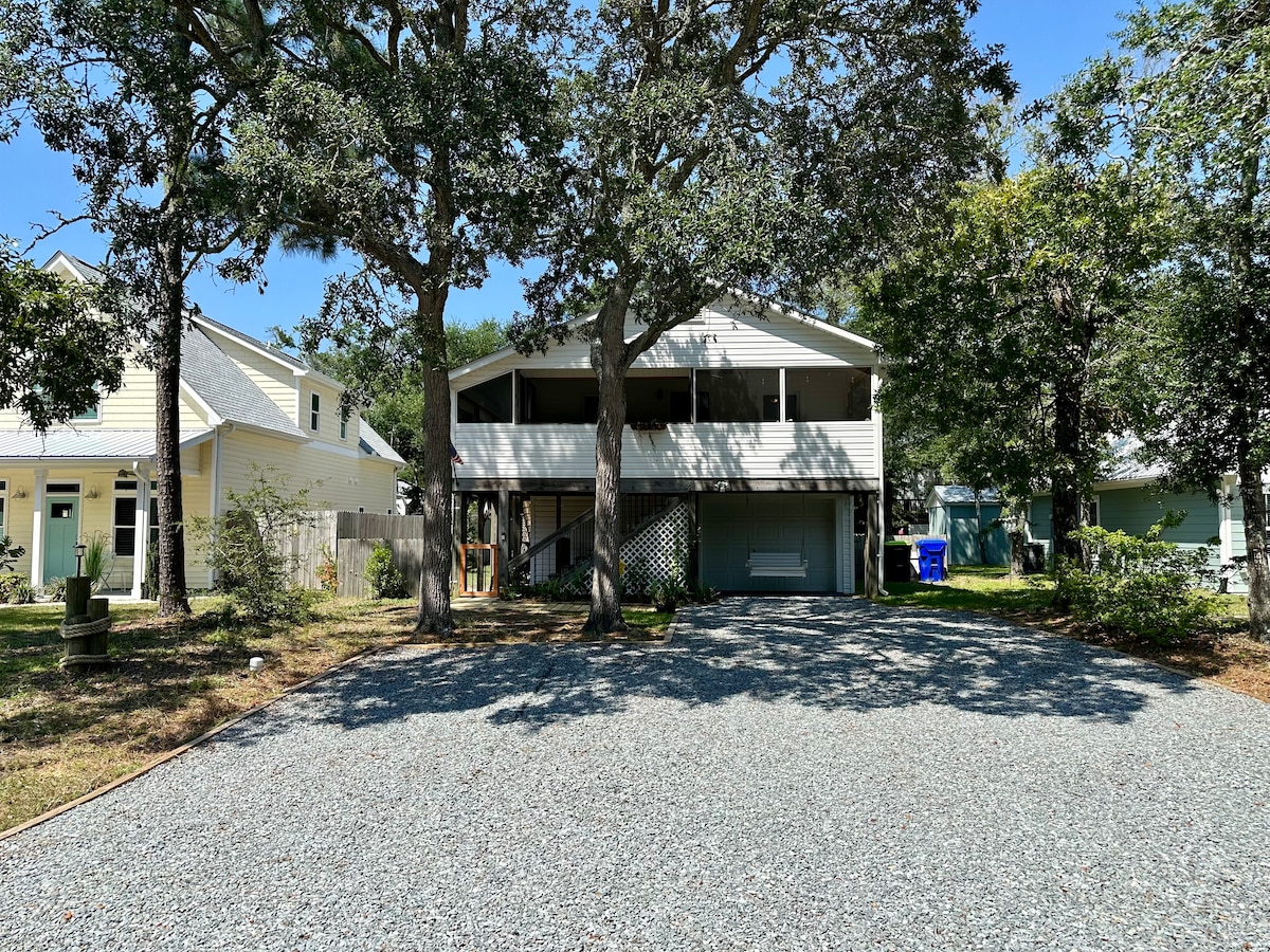¡Te damos la bienvenida a nuestro oasis costero! Nuestro espacio cuenta con 3 dormitorios (4 camas + parque infantil + moisés), 2 baños, ducha exterior, pantalla extra grande en el porche delantero y terraza trasera con zona de comedor y parrilla. Nuestra casa se adapta perfectamente a las familias (incluidas las que tienen bebés y niños) y a todos los demás. Entre descansar en el porche delantero (mecedoras, sillón tipo huevo y sofá) o escuchar música mientras asas a la parrilla en la parte trasera, ¡esperamos que tu tiempo aquí no sea más que recuerdos felices y momentos divertidos!