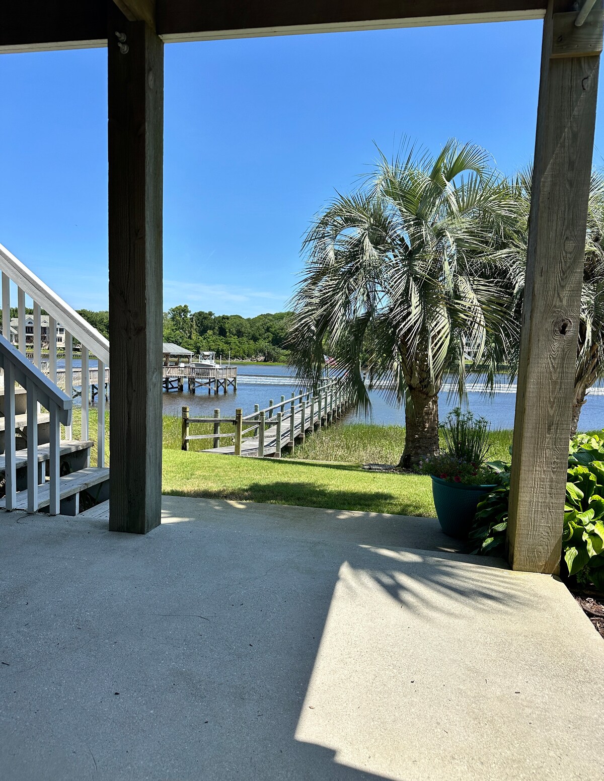 Este acogedor refugio en la planta baja de Oak Island Intracoastal ofrece vistas tranquilas y un ambiente relajado. Disfruta de una cama tamaño king, baño completo, cocina pequeña y colchón inflable tamaño queen opcional. Tómate un café junto al agua, observa los barcos pasar y relájate después de la playa. Hay dos bicicletas disponibles previa solicitud. Solo tienes que traer el bañador, nosotros nos encargamos del resto: ¡tumbonas, toallas y nevera portátil incluidas! Esta es una zona familiar de bajo perfil, a solo un corto trayecto en coche o en bicicleta de la playa, los helados y los restaurantes.