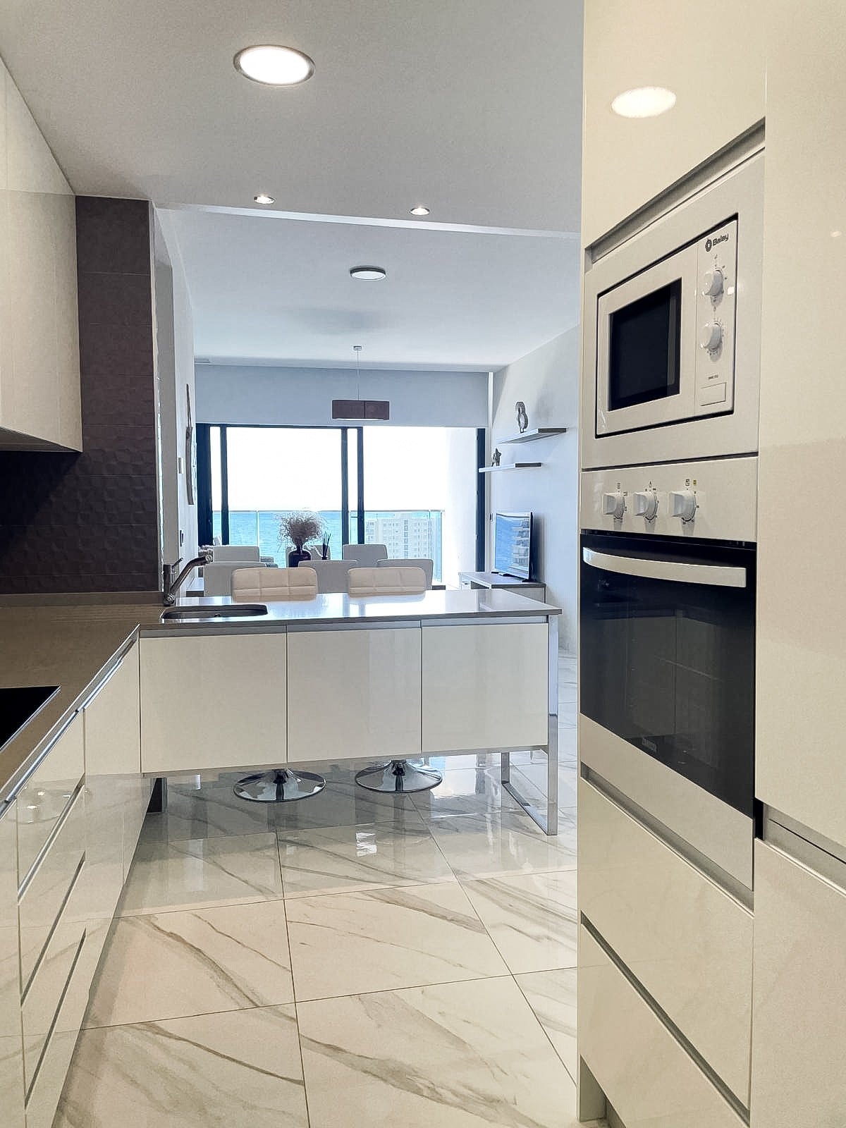 Este exquisito apartamento a extrenar, ubicado en pleno centro, ofrece comodidades de primera clase. Cocina, totalmente equipada . El comedor cuenta con una pantalla de 65" y un cómodo cheslong, ideal para relajarte después de un dia de playa. 2 baños completos con ducha, además de habitaciones equipadas con TV y Azotea Solarium La ubicación es inmejorable: a escasos metros de las dos playas, y cerca de las zonas de ocio más vibrantes de Benidorm. ¡Ven y disfruta de unas vacaciones de ensueño!