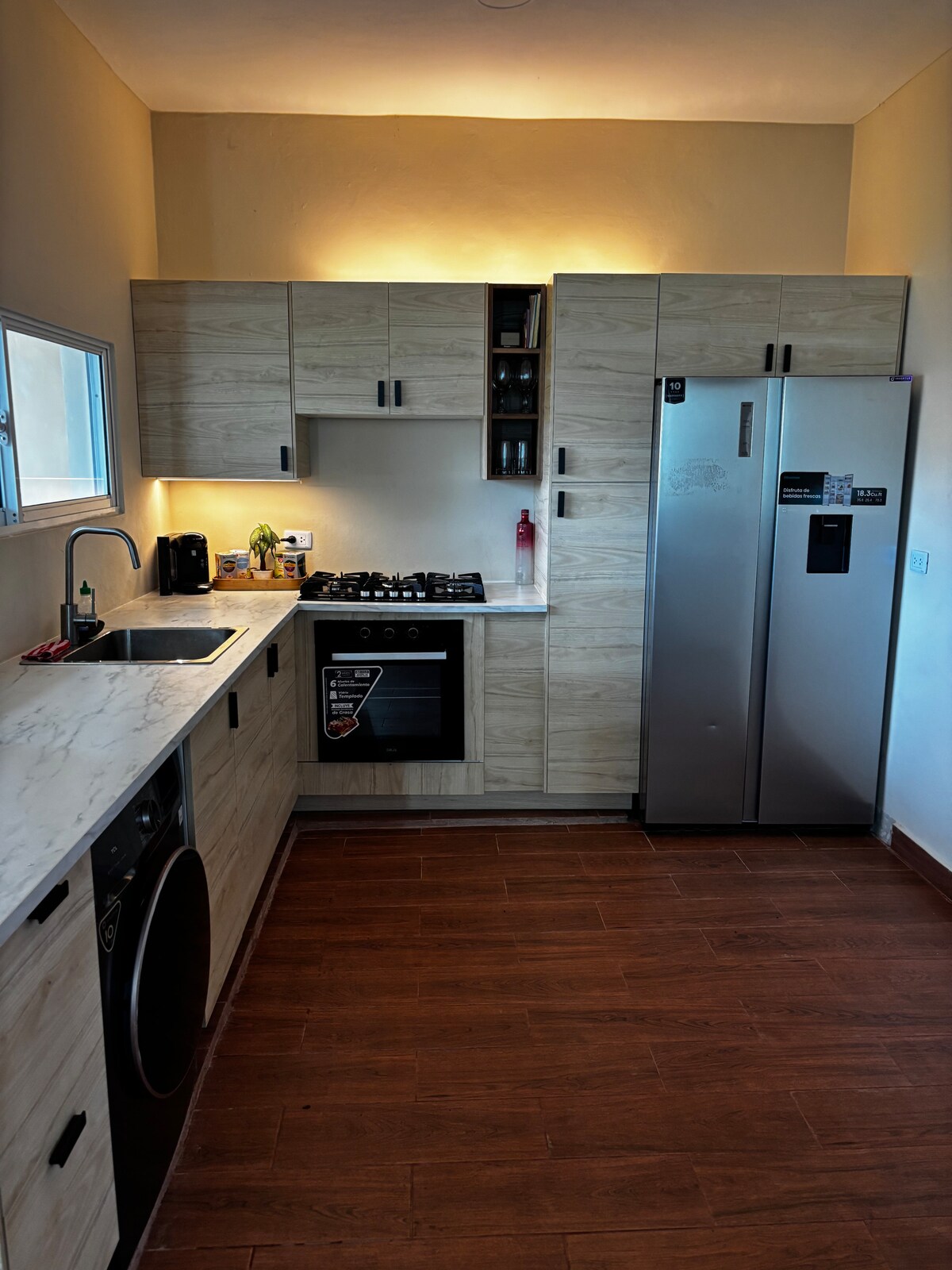 Alójese a pocos pasos de Playa Acapulco en este luminoso y moderno departamento de 3 dormitorios situado en el Malecón de Puerto Plata. Disfrute de las vistas al mar desde su balcón privado, ideal para tomar el café por la mañana o una copa al atardecer. El departamento cuenta con una cocina totalmente equipada, una elegante sala de estar, Wi-Fi de alta velocidad y camas cómodas para hasta 6 huéspedes. El dormitorio principal incluye una cama tamaño king y baño privado. Cruce la calle para llegar a la playa, a los restaurantes y a los lugares de interés de la zona.