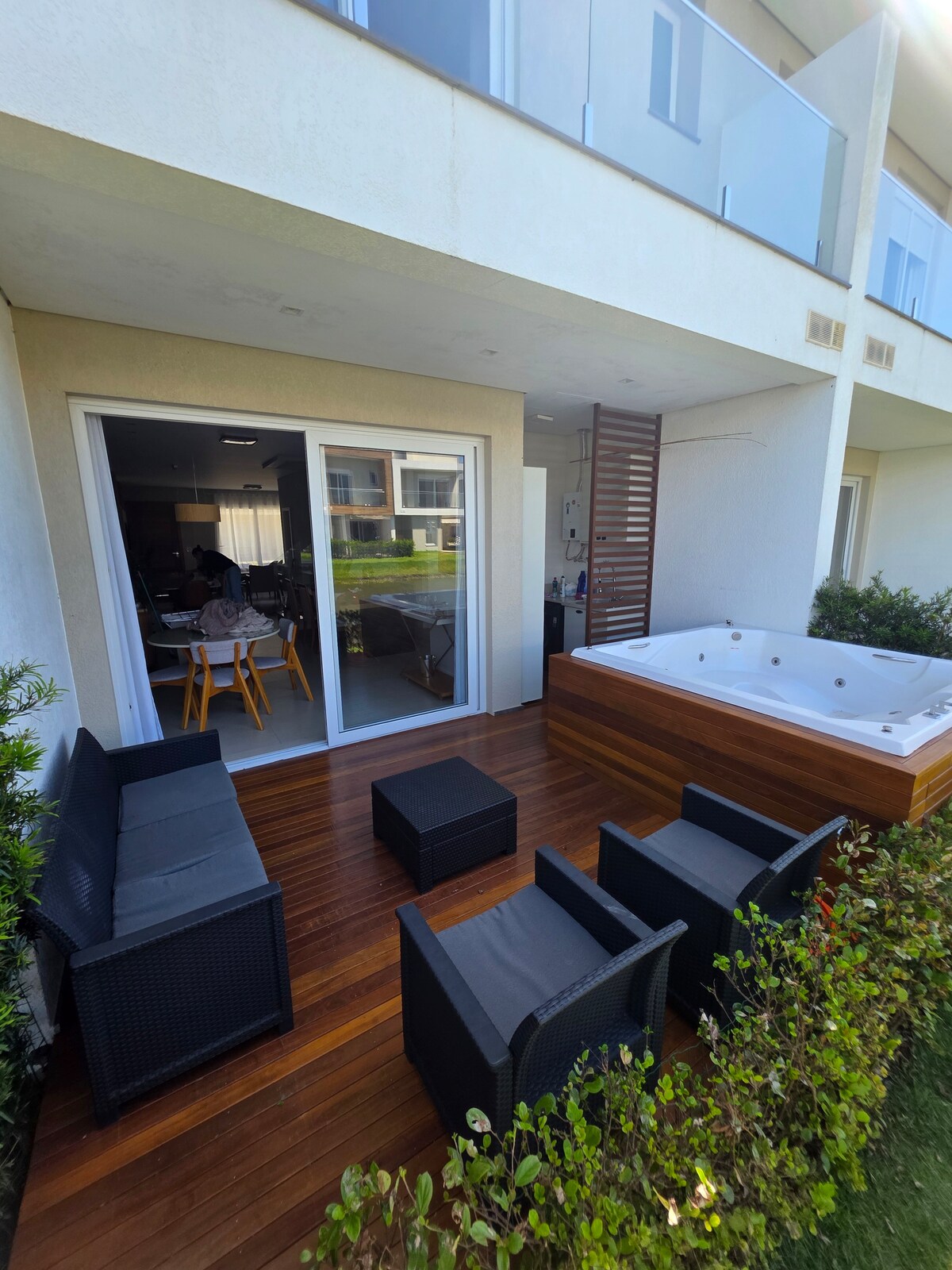 casa a orillas del lago con bañera y jacuzzi junto al lago. casa con 2 suites, 1 habitación doble, más dos colchones individuales. Aire acondicionado. SPA de hidromasaje con opción de calefacción (consultar valor con el anfitrión). Infraestructura del condominio para uso común de los huéspedes: gimnasio, piscina exterior, piscina climatizada, sauna, sala de juegos, pista de tenis, sala de juegos infantiles, pista de voleibol, restaurante de verano, mercado. ¡Casa muy bien equipada para recibir a su familia!