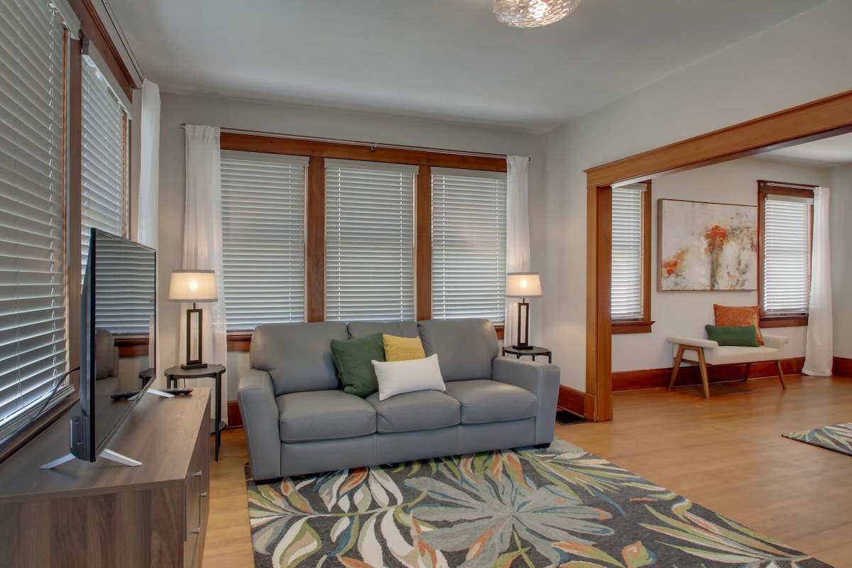 Siéntete como en casa en nuestra casa de ladrillo de 1920, vintage, única y acogedora. Ubicada en el histórico distrito de John Wood y a pocos minutos de nuestro centro de la ciudad local, donde encontrarás algunos de nuestros restaurantes y pubs locales favoritos que sabemos que también te encantarán. También estamos a pocas manzanas del famoso río Misisipi, del hospital Blessing, de la Universidad de Quincy y enfrente de la iglesia Salem.