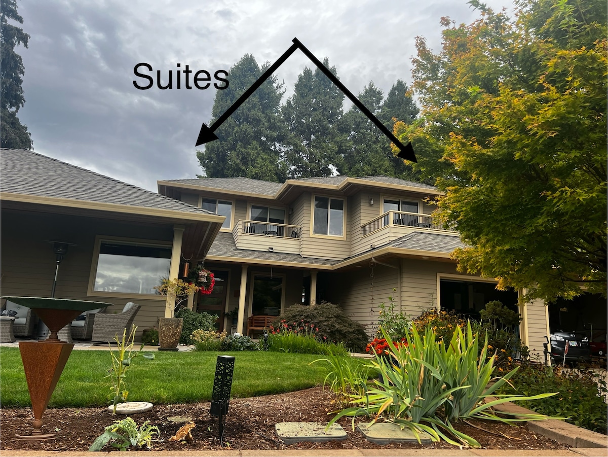 Disfruta de la paz de un entorno rural a pocos minutos de restaurantes y tiendas en el centro de Salem, el Riverwalk y la Universidad de Willamette. Haz una excursión de un día a la costa o relájate y disfruta de una botella de vino en cualquiera de las 2 terrazas, o desconecta junto a la acogedora chimenea en la cómoda suite de invitados del segundo piso con entrada privada. Nuestra residencia se encuentra en una hermosa zona boscosa del sur de Salem con fácil acceso a la Interestatal 5.