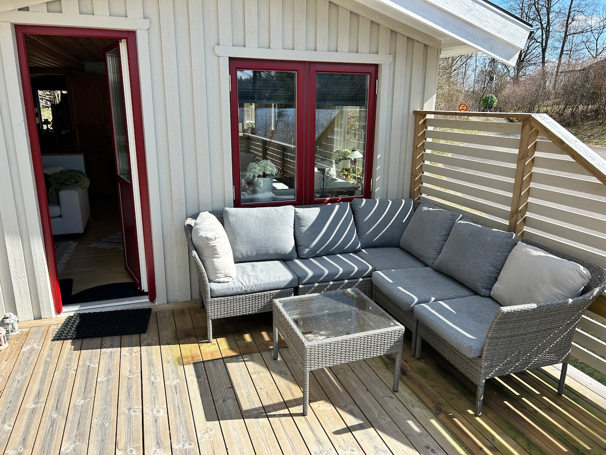 Cabaña para 4 personas en el campo cerca del bosque y el lago, con un gran balcón, altillo y sofá cama. Con la posibilidad de alquilar una bañera de hidromasaje. A 40 km de Gotemburgo con buen transporte público. A 4 km de la tienda. A 6 km del restaurante abierto por la noche, a 1,5 km de la panadería, cafetería y tienda de decoración, a unos 15 km del reino de la tela, con venta de fábrica y outlets.