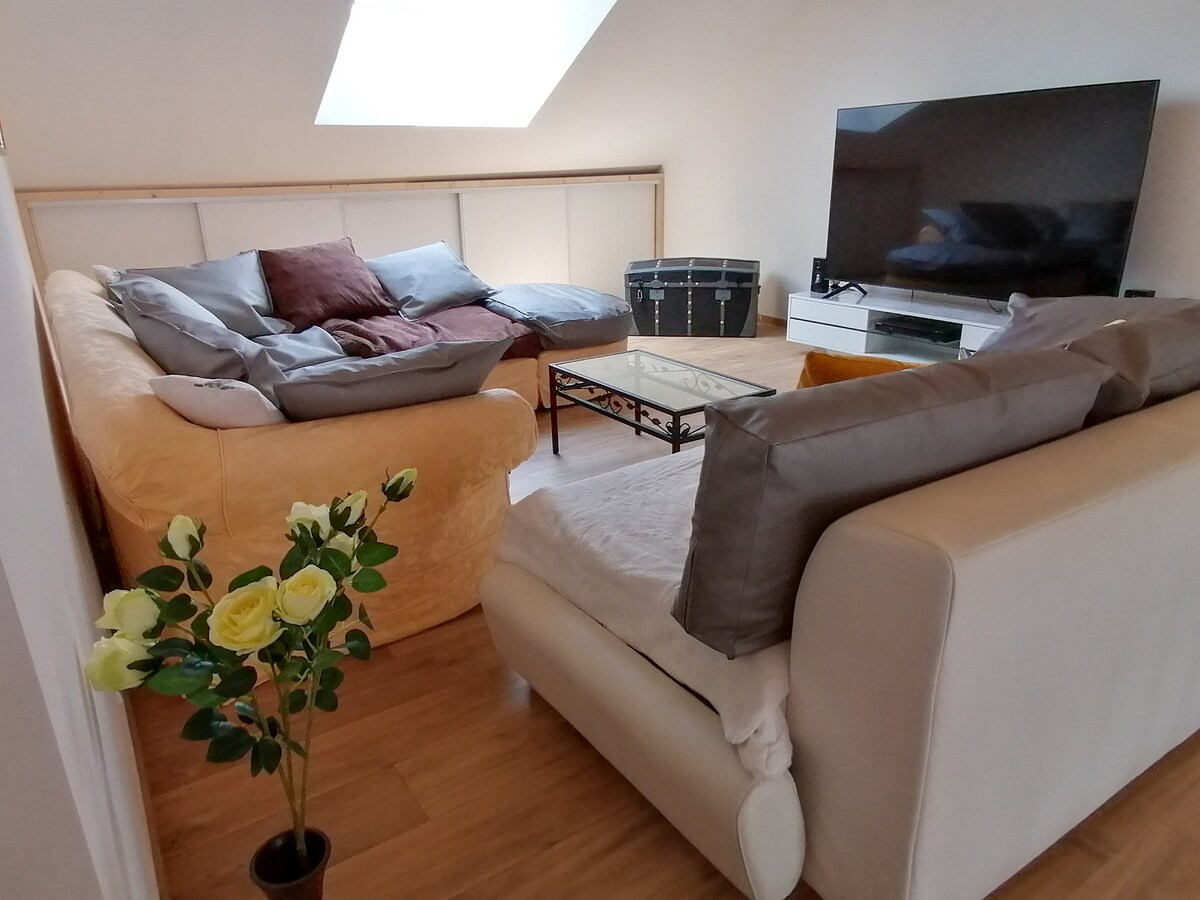 Este alojamiento tranquilo y cálido ofrece una estancia relajante para toda la familia (6 personas). Situado a 15 minutos de Besançon, a 40 minutos de Dijon, a 1 hora de Suiza, este apartamento, que consta de 2 dormitorios con 3 camas dobles y 1 cuna, una sala de estar, una cocina totalmente equipada, un baño con todas las comodidades (bañera y ducha), un vestidor con lavadora, una terraza exterior con muebles de jardín y barbacoa, wifi...le permitirá contemplar la región Borgoña-Franco Condado con total serenidad.