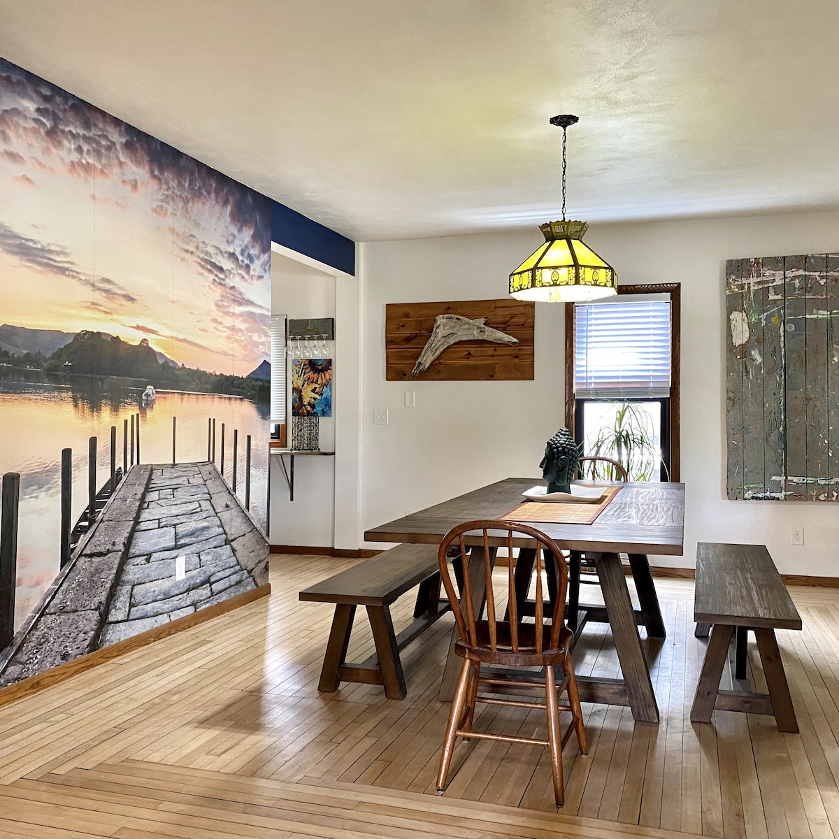 Recién remodelado, 2 dormitorios, tiene un baño/lavadero combinado. La sala de estar te permite un espacio para relajarte. Echa un vistazo a los juegos o coge un libro para leer. El solárium iluminado por el sol tiene una gran vista del lago Buffalo y es un lugar estupendo para tomar un café por la mañana. Da un corto paseo hasta el centro de la ciudad y echa un vistazo a las cascadas o quédate cerca de la casa y deambula por la propiedad. Echa un vistazo a las flores de metal o a la bola de bolos pintada. Incluso puedes encontrar una hoja de cemento pintada o dos.