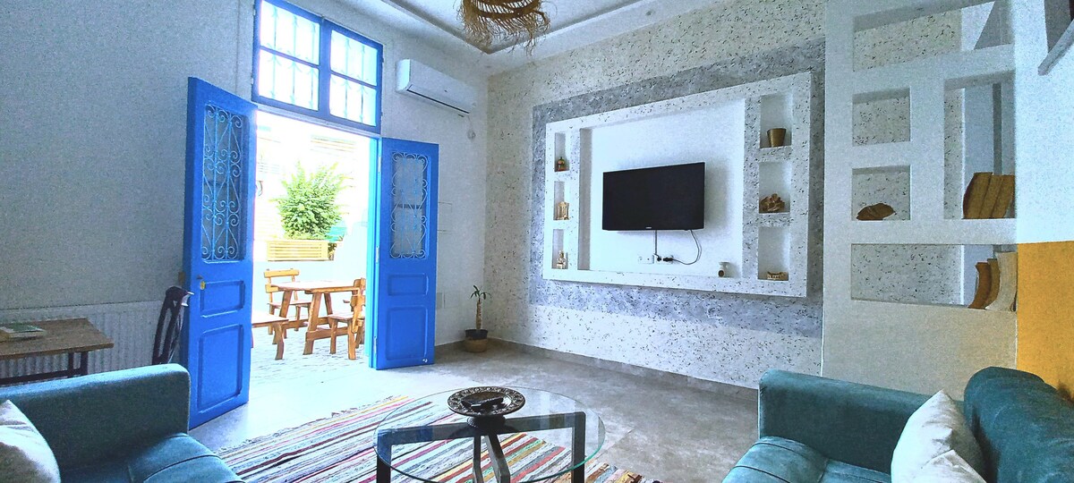 Sumérgete en la fusión de lujo y tradición en nuestra villa totalmente renovada, ubicada en las colinas del pintoresco Sidi-Bou-Said. Disfruta de impresionantes vistas de la histórica Cartago y del cautivador mar Mediterráneo desde nuestra luminosa morada. Experimenta el encanto de la cultura tunecina con todas las comodidades modernas a tu alcance, todo a poca distancia a pie. Disfruta del arte, las boutiques y los cafés locales que definen el vibrante pulso del pueblo. Nuestra villa es la clave para una estancia inolvidable.