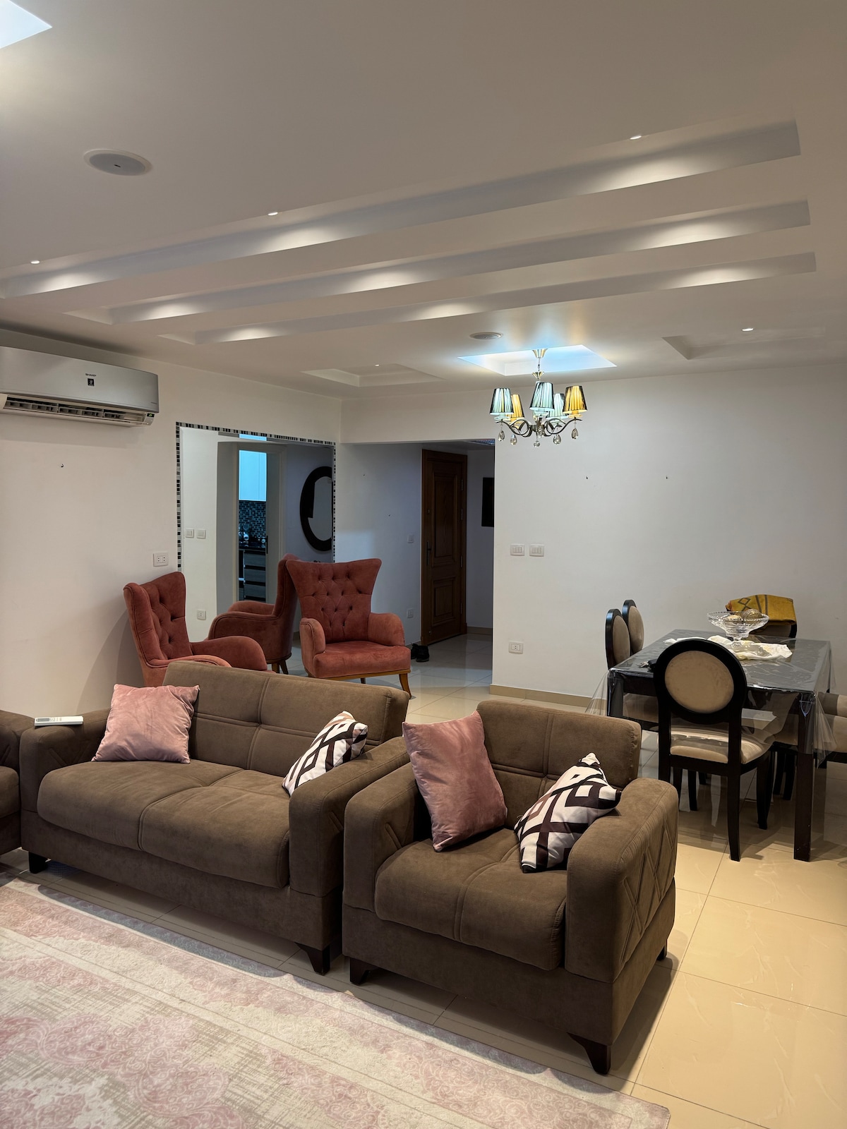 Luxurious apartment in the prestigious Four Seasons Alexandria. Features a master bedroom with king-size bed, ensuite bathroom, walk-in dressing room, and sea-view balcony. Second bedroom has two single beds and sea views. Spacious living room, dining area, fully equipped kitchen, laundry room, and a separate full bathroom. Enjoy luxury hotel services, private beach and pool access, shopping, and entertainment within the building. No electricity cutoffs for uninterrupted comfort.