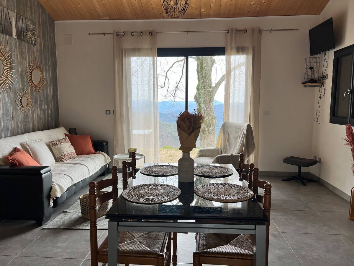¡Encantadora casa rural de piedra de las Cevenas, decorada con buen gusto, para los amantes de la tranquilidad! Dispondrá de una hermosa terraza frente a la casa con barbacoa y un espacio exterior arbolado de más de 200 m². Podrá admirar las magníficas vistas de los valles y cumbres de las Cevenas durante el día y disfrutar de las hermosas noches estrelladas sin ninguna contaminación lumínica. No hay ningún edificio delante: ¡una vista despejada de la naturaleza! Los excursionistas son bienvenidos: hay muchas rutas de senderismo en los alrededores.