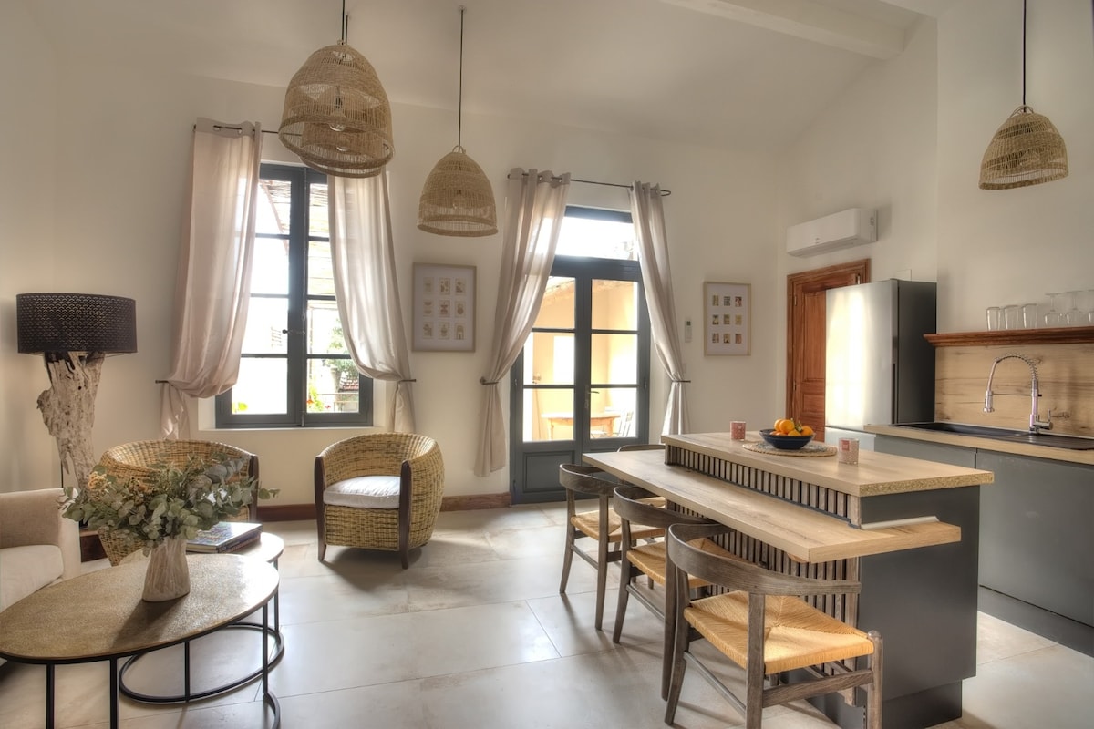 Mas Les Pins (con 2600 m²) tiene una rica historia y forma parte de un complejo de iglesias del siglo XII y antiguas bodegas de vino. Este verde ★★★★ paraíso está a solo 3 km del centro dinámico de Montpellier (10 minutos en tranvía) y a 10 km del mar Mediterráneo. Con 2 dormitorios encantadores, una cocina bien equipada, una sala de estar soleada, 2 grandes terrazas para disfrutar de un aperitivo con vistas al extenso jardín y al bosque de pinos y una piscina de agua salada de 12 metros, tienes todo lo que necesitas para una estancia relajante.