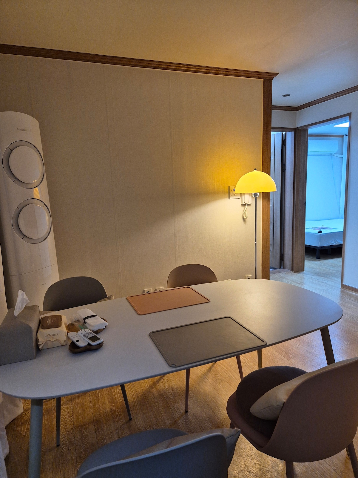Esta es una casa nueva que puede alojar a un total de 12 personas con 6 camas (2 queen, 4 super individuales) y 4 camas. Está a 30 minutos del aeropuerto de Gimhae y cerca del parque acuático Lotte y el hotel Lotte desde la ventana. Situado en el centro de la zona de restauración de nueva creación, hay muchas instalaciones convenientes, como restaurantes y hospitales cerca. La cama y la ropa de cama que se utilizan en el hotel están preparadas para que puedas descansar cómodamente. Hay una mesa de comedor con muchos asientos para 10 personas. La cuna, la bañera, la silla, la vajilla, etc. están listas, por lo que es un lugar cómodo para viajar con un niño.(Solicite con antelación si necesita una cuna)