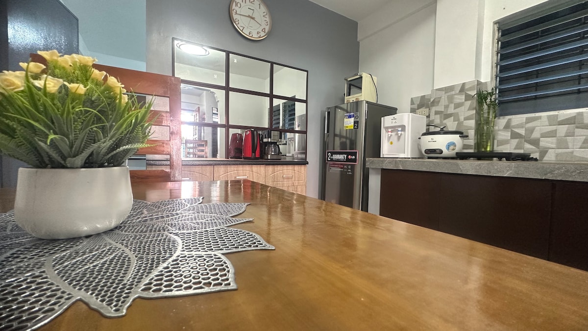 Enjoy your stay in a spacious private guest house, perfect for 6–8 guests. You’ll have the entire place to yourself—quiet, comfortable, and budget-friendly. Relax in the open living space, share meals in the dining area, and enjoy the free use of kitchen with utensils and rice cooker—perfect for group stays. Ideal for families, barkada, or small group getaways looking for a peaceful and private stay.