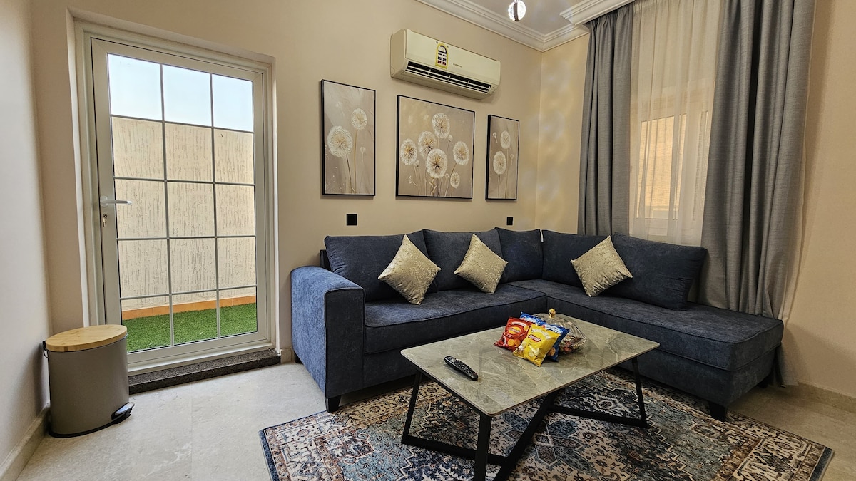 Alójate en un moderno apartamento en Medina, una estancia serena a pocos pasos de Masjid Quba. Cerca de Quba Masjid, centro comercial y Aliat Mall. Disfruta de una espaciosa residencia con un diseño moderno que incluye aire acondicionado central y duchas con efecto lluvia.