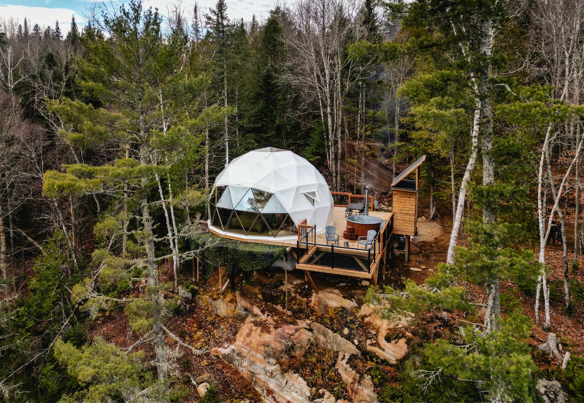 *Expérience sans eau ni électricité* Voici un hébergement de glamping unique située à St-Mathieu-du-Parc. Ce dôme confortable dispose d'un lit queen-size (literie incluse) qui fait face à une grande ''bay window'' avec une vue imprenable sur la belle nature qui l'entoure. Un foyer au bois pour vous réchauffer sera là pour vous accueillir après une journée complète passée à profiter du plein air. Cet espace est unique - et hors réseau/off grid.