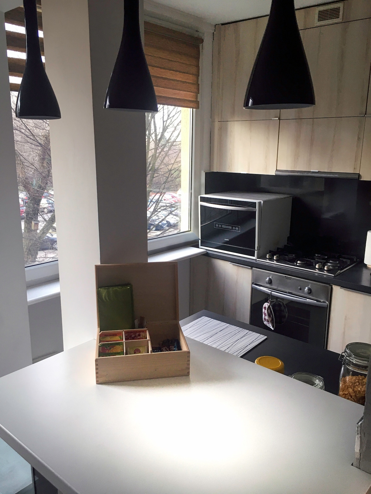 El apartamento está situado a solo 200 metros de la animada plaza Litewski, en el corazón de Lublin. A pesar de la proximidad al bullicio de la ciudad, ofrece descanso en una zona tranquila y silenciosa, rodeada de vegetación, lo que permite relajarse por completo después de un día lleno de emociones. Es el lugar perfecto para las personas que quieren combinar comodidad, estilo y confort en uno.