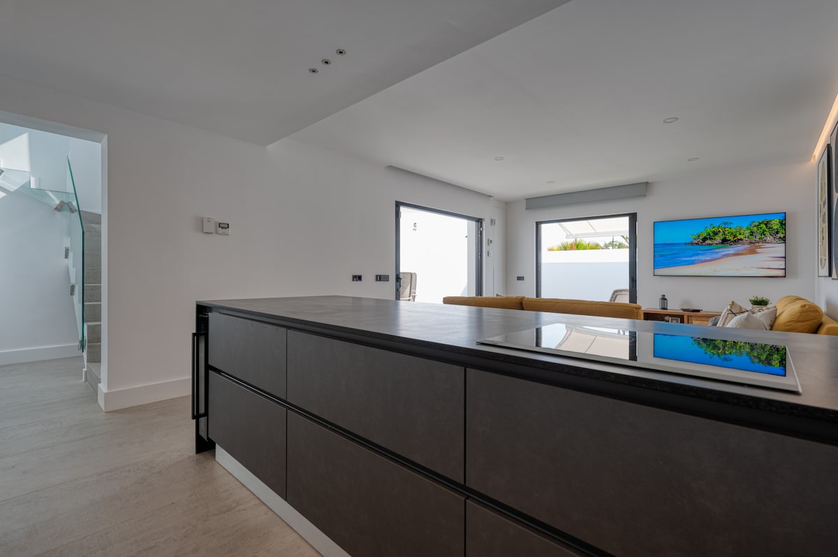 Exclusiva villa de lujo a 500 metros de Playa del Inglés, Gran Canaria. Recién reformada con un diseño moderno y elegante, ofrece dos habitaciones dobles con baño en suite, aire acondicionado y muebles de alta gama. La terraza privada con piscina climatizada es el lugar perfecto para relajarse, mientras que los materiales de primera calidad y la cuidada decoración elevan cada detalle. Ideal para quienes buscan lujo y comodidad cerca del mar.