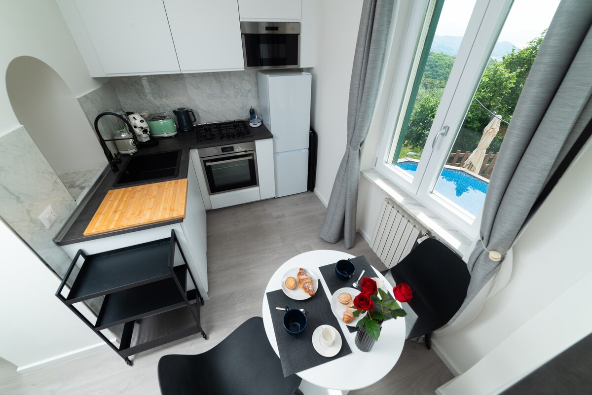 Suite Dorotea es un elegante apartamento inmerso en la tranquilidad, a poca distancia de Salerno. Se encuentra a 10 minutos en coche del centro ciudad y está equipado con dos piscinas. Deléitese de pura relajación en su propia zona de sauna privada, un verdadero lujo exclusivo de bienestar. Dispone de una cocina americana, un moderno cuarto de baño y una zona de lectura con vistas al mar. ¡Perfecto para aquellos que quieran visitar Salerno y la Costa mientras se regalan momentos de relax!