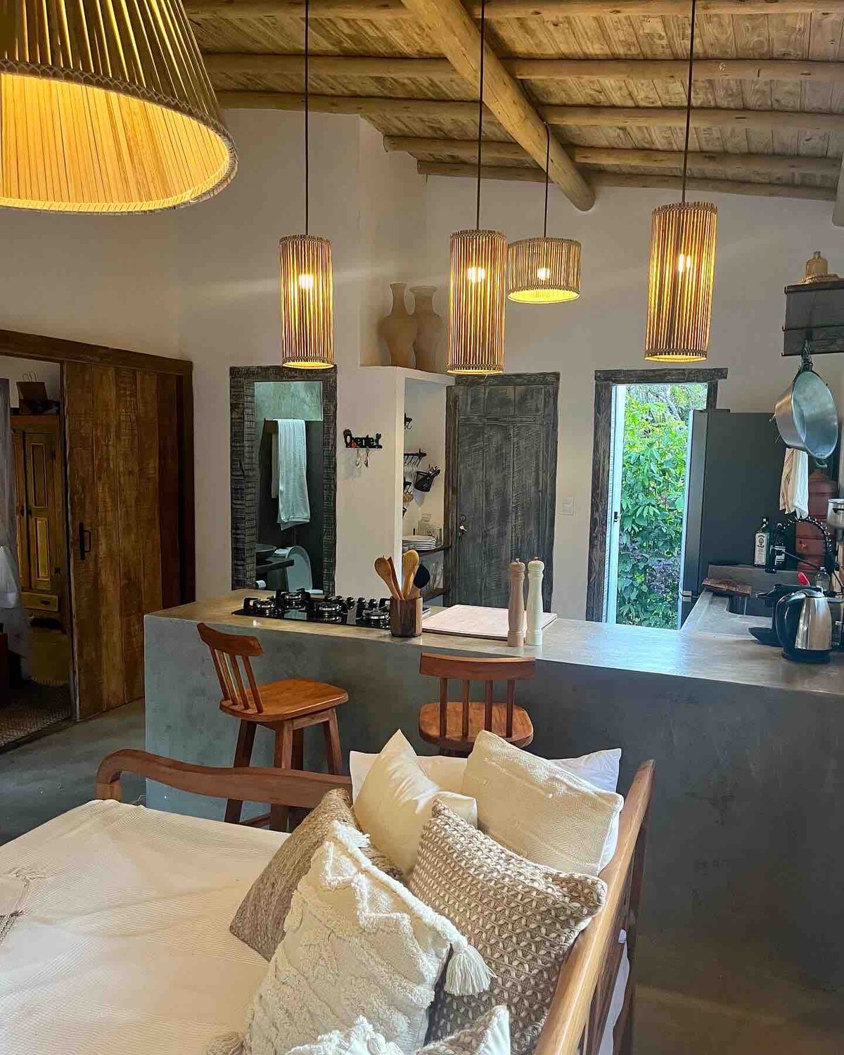 Retiro encantador y acogedor rodeado de naturaleza. Casa luminosa y espaciosa con cocina completa, barbacoa, ducha al aire libre bajo las estrellas y un amplio patio lleno de luz. Cerca de la playa y el río: el lugar perfecto para relajarse, cocinar y escuchar a los pájaros.