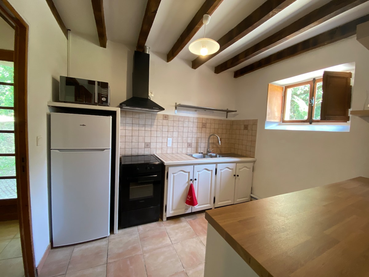 Bienvenido a Le Fenil, acogedora casa T3 de 75 m² en el corazón de una finca privada de 9 hectáreas, en la campiña de Gers. Pequeño jardín con vistas a un roble centenario y a la capilla de Pis. 2 dormitorios (cama doble) cada uno con baño, uno de ellos con una pequeña sala de estar y TV. Salón con sofá y TV conectada, cocina equipada, wifi, ropa de cama incluida y venta de productos locales. Ideal para una estancia tranquila en pareja o en familia. Animales bienvenidos. Aparcamiento libre