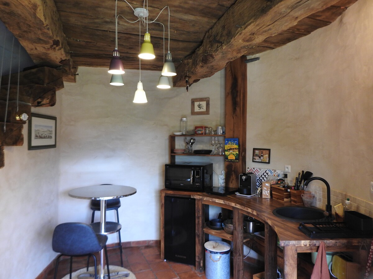Pequeño estudio acogedor de madera estilo cabaña (o «tiny house»). Bien equipado,cómodo y a la vez sencillo, con su dormitorio en el altillo ( techo bajo ) . Podrá disfrutar de su pequeña terraza,las vistas a los Pirineos y las colinas del Gers. Estudio para dos personas sin hijos (debido a la escalera). Sin contaminación lumínica, alojamiento ideal para los amantes de la astronomía o simplemente para aquellos a los que les gusta mirar las estrellas ⭐️