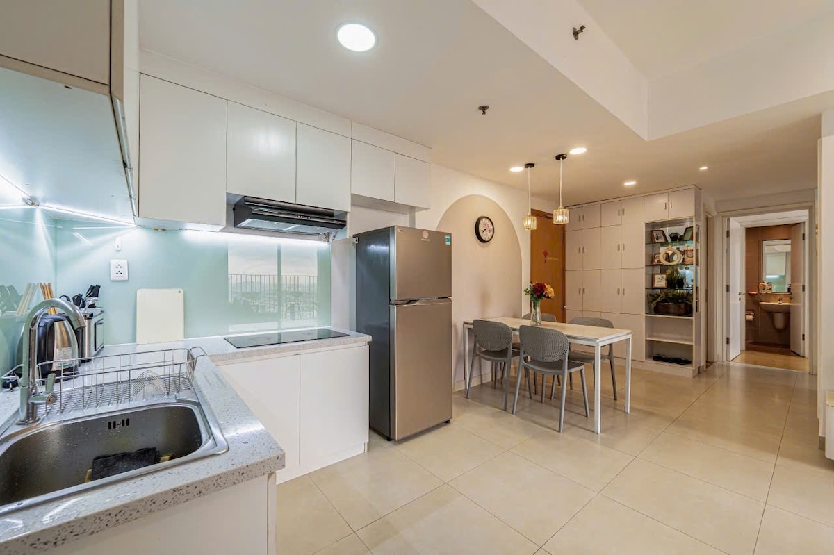 🌿 Te damos la bienvenida a Beenhouse 🎉 La acogedora casa se encuentra justo en el edificio de apartamentos Masteri Thao Dien, uno de los mejores lugares para vivir en el distrito 2. El edificio está situado justo en la autopista de Hanoi (Vo Nguyen Giap), a unos 15-20 minutos en taxi del distrito 1. Alrededor hay muchas cafeterías, restaurantes euroasiáticos y salones de belleza. Apartamento luminoso y moderno con vistas a la ciudad. Las instalaciones completas incluyen piscina, gimnasio, zona de barbacoa, parque infantil y seguridad 24/7.