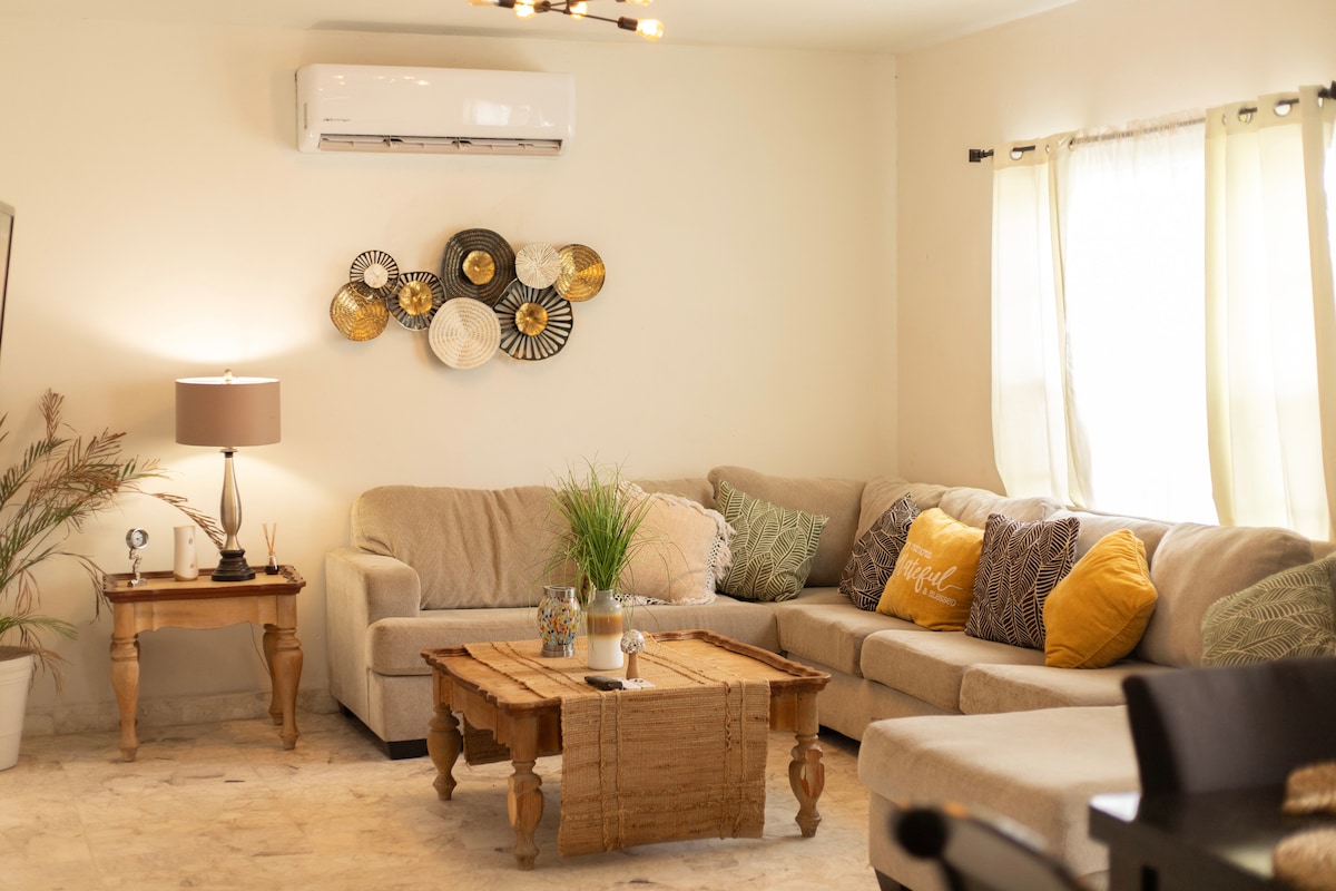 Hermosa casa en el corazón de la ciudad! Ideal descansar y pasar un buen rato de películas y juegos de mesa.🎲🃏 Confort y buena vibra. 🇺🇸A 10 min del consulado!! 🍃Un lugar de color, calidez y energía positiva. ☀️Espacios llenos de luz y color que invitan al descanso. Amenidades completas: Wifi de 500mps, a/c y smart tv’s en todas las recamaras, agua caliente, terraza con asador, bar y lo mejor a una cuadra de la Sexta Avenida. Ven a Casa María Esther y siéntete como en casa, pero mejor.🏡
