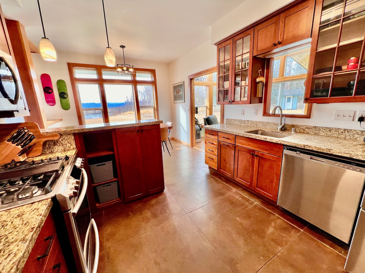 Ubicada a dos millas de la ciudad de Talkeetna en el lago Christiansen, se encuentra una casa de dos dormitorios de nueva construcción con un loft adicional con vistas al agua. Tanto si estás disfrutando de la sauna, utilizando las tablas de paddle y la canoa de cortesía o haciendo una barbacoa en la cubierta, ¡te relajarás y disfrutarás de todas las actividades que el lago tiene para ofrecer! Esta ubicación está en el sistema de carreteras con espacio para casas rodantes o remolques y, alternativamente, accesible a través de hidroavión o avión de esquí.
