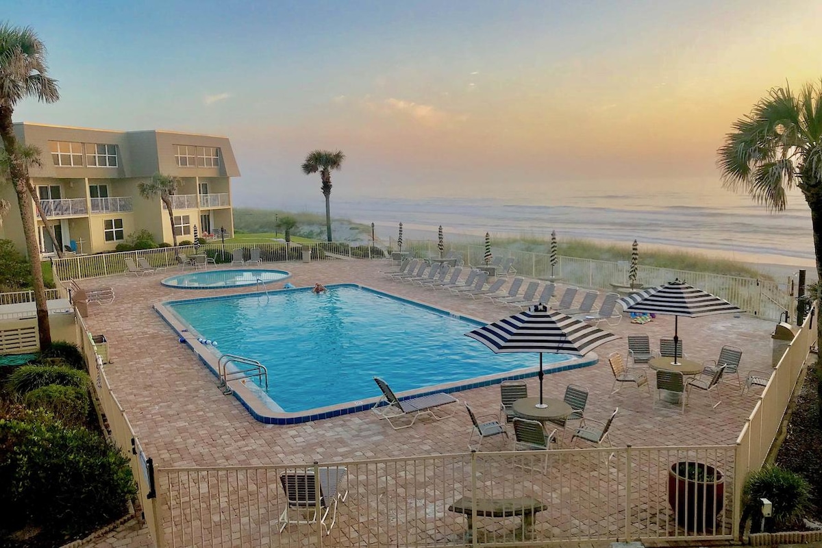 En este alojamiento se respira tranquilidad: ¡relájate con toda la familia! Cuatro piscinas climatizadas abiertas, canchas de tenis, pickball, canchas de baloncesto y parque infantil hacen de este un cómodo alojamiento de vacaciones para toda la familia. La puerta abierta las 24 horas te proporciona un entorno de vida seguro y cómodo frente al mar y un amanecer inigualable todos los días. Si ya has tenido suficiente mar, al otro lado del barrio hay un parque nacional. A 15 minutos de Saint Augustine, transporte conveniente. (No se admiten mascotas)